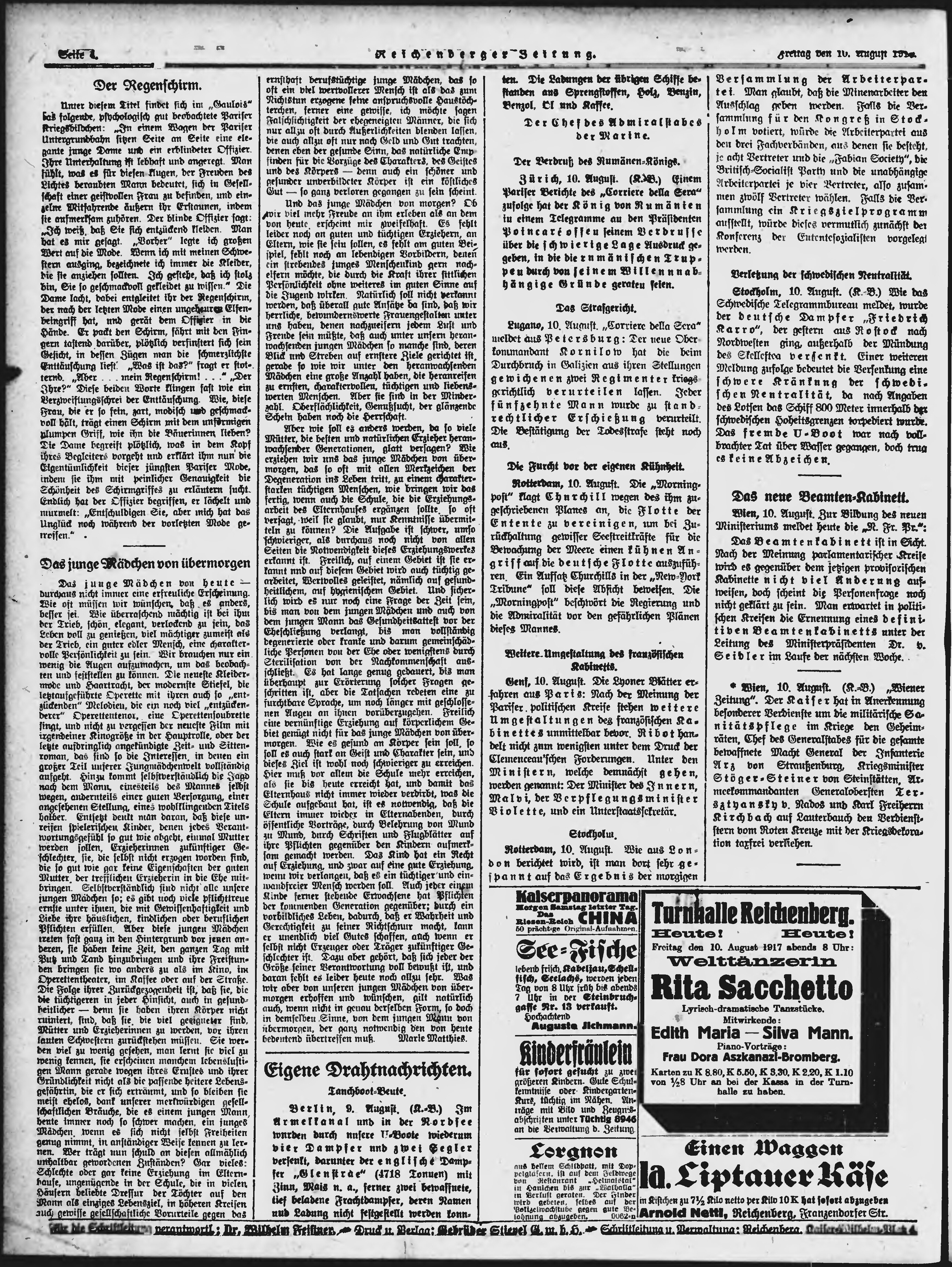 * Datum vydání výtisku: 10.8.1917 Číslo výtisku: 191 Typ výtisku: příloha Poznámky k výtisku: večerní vydání;