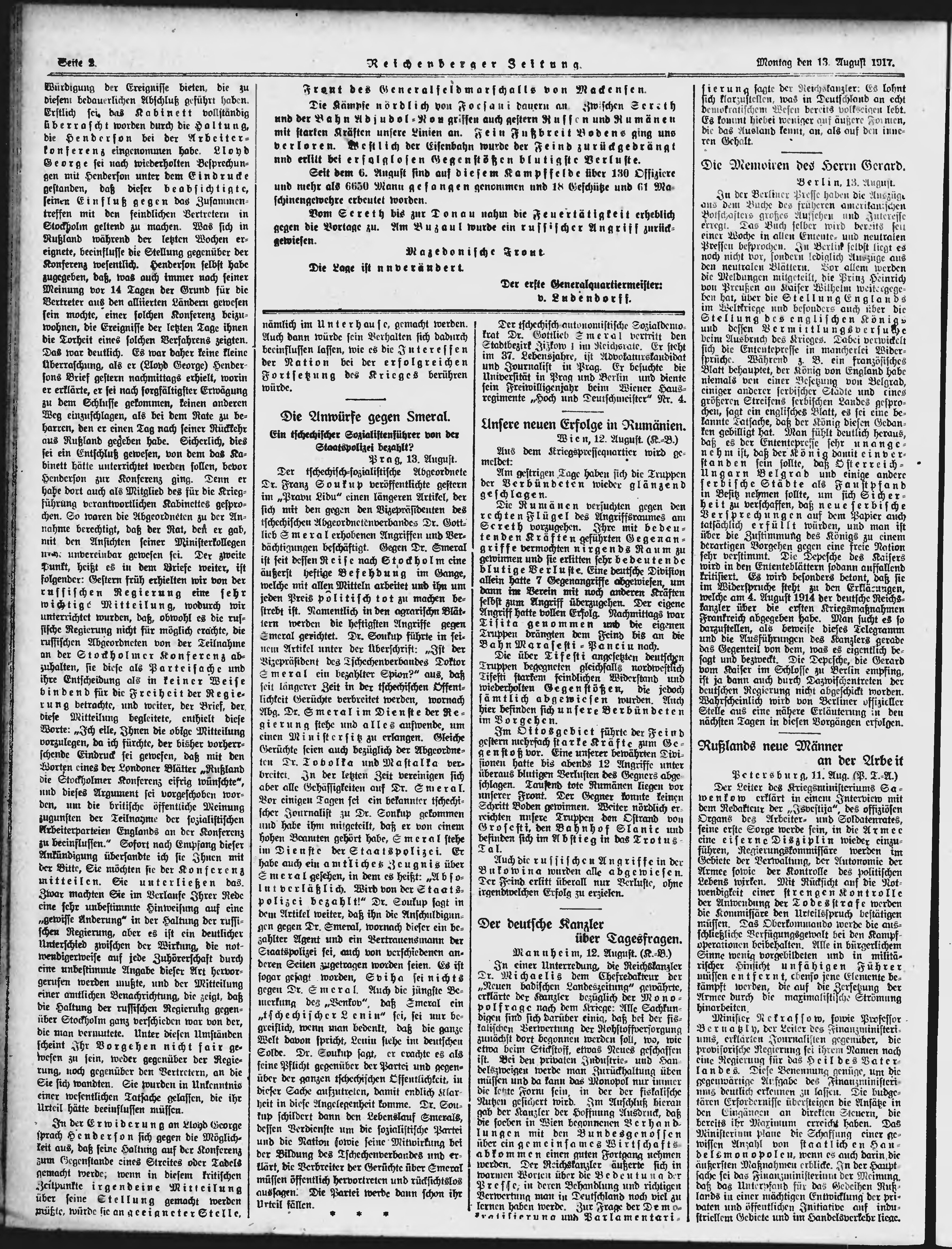 * Datum vydání výtisku: 13.8.1917 Číslo výtisku: 193 Typ výtisku: příloha Poznámky k výtisku: večerní vydání;
