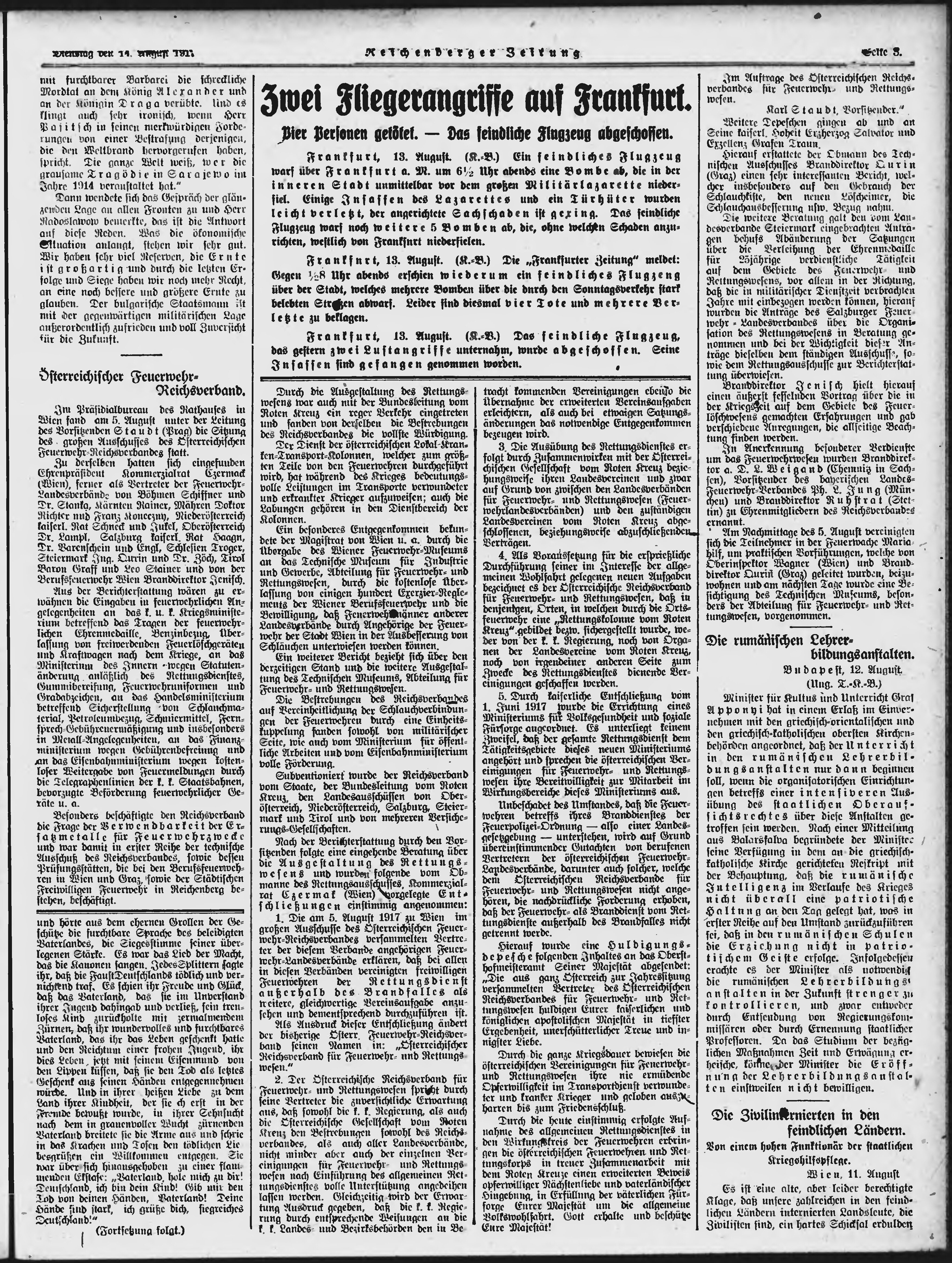 * Datum vydání výtisku: 14.8.1917 Číslo výtisku: 193 Poznámky k výtisku: ranní vydání;