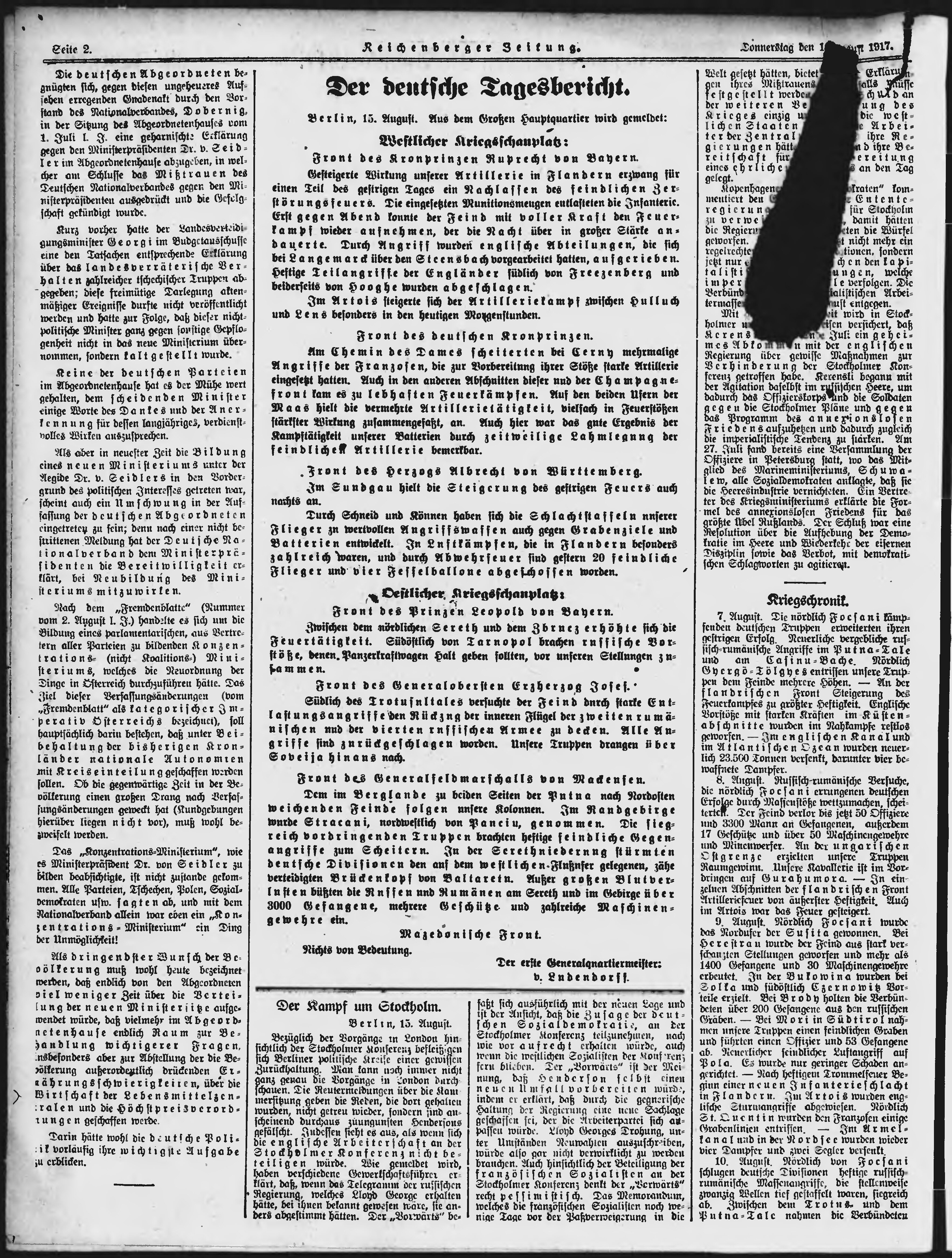 * Datum vydání výtisku: 16.8.1917 Číslo výtisku: 195 Poznámky k výtisku: ranní vydání;