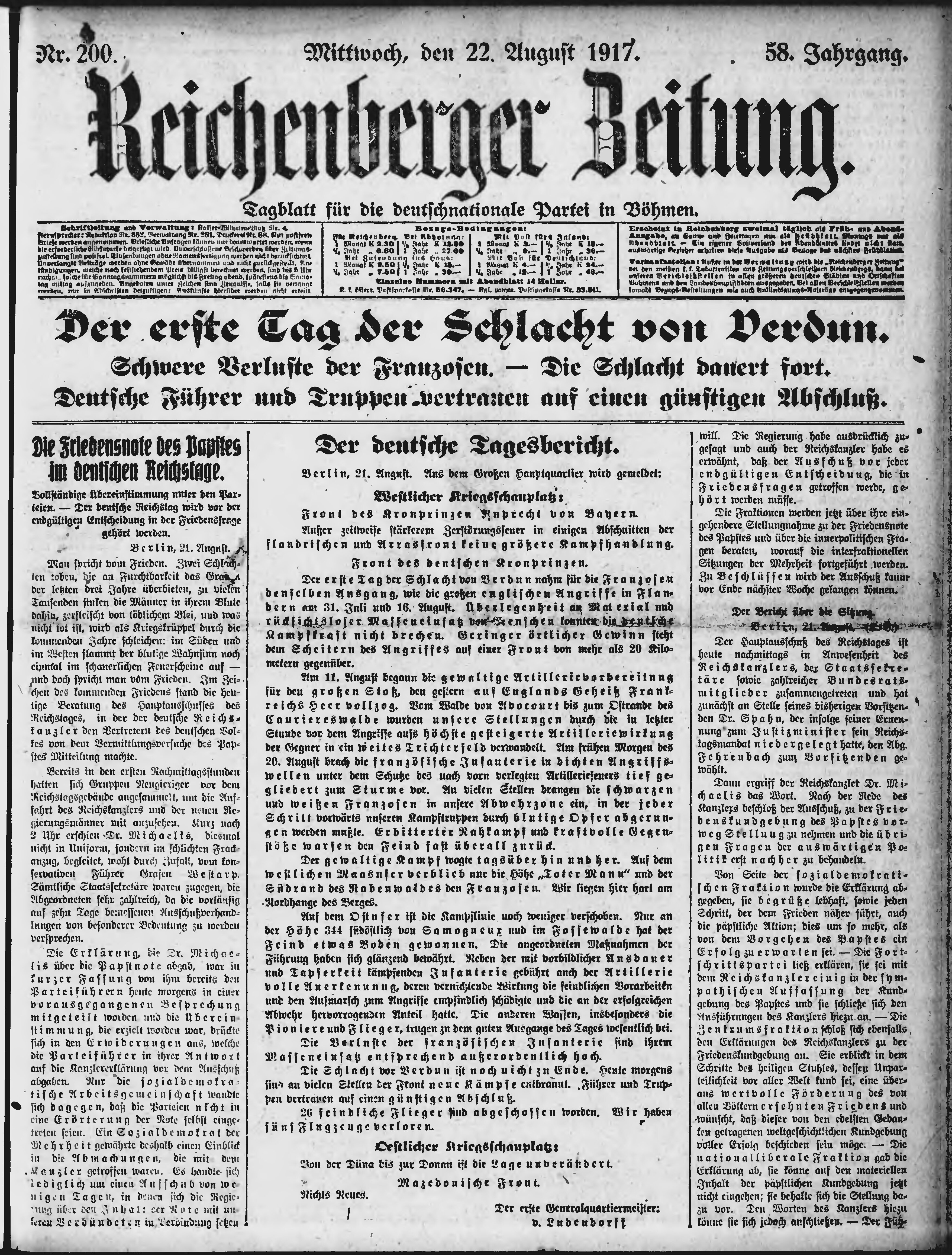 * Datum vydání výtisku: 22.8.1917 Číslo výtisku: 200 Poznámky k výtisku: ranní vydání;