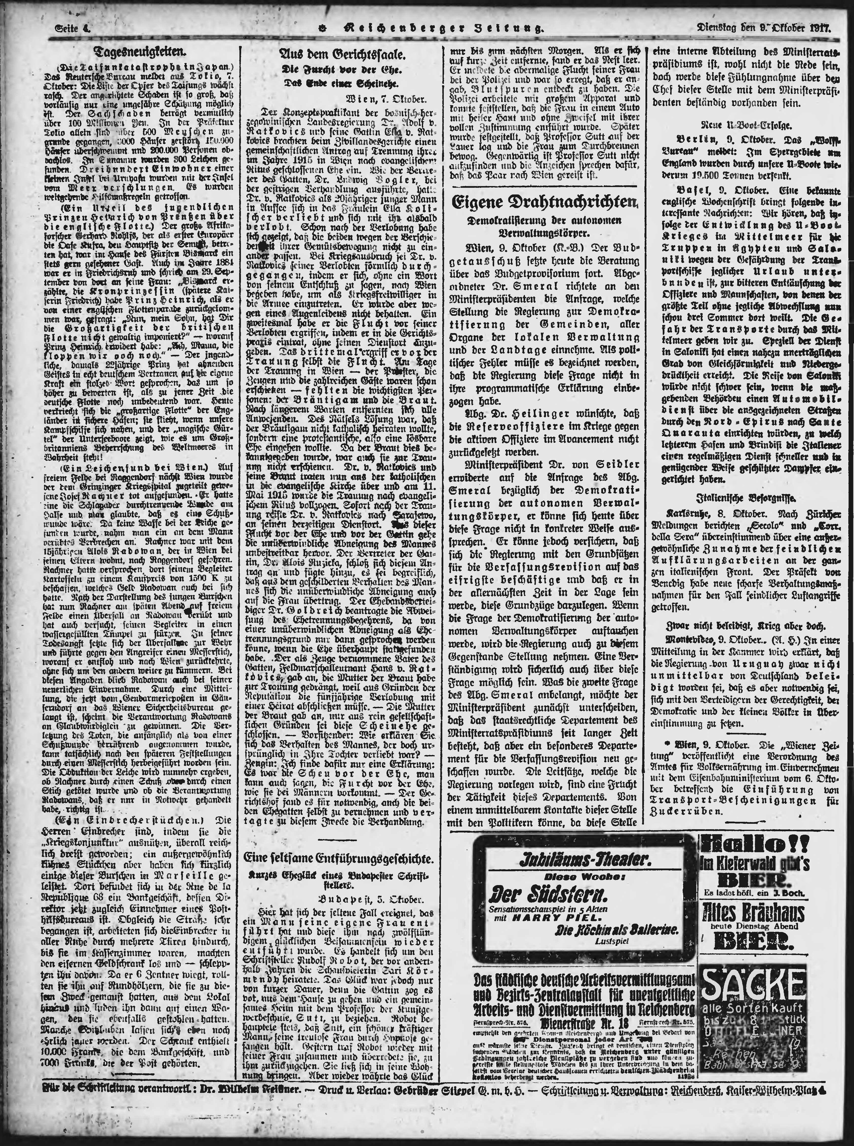 * Datum vydání výtisku: 9.10.1917 Číslo výtisku: 242 Typ výtisku: příloha Poznámky k výtisku: večerní vydání;