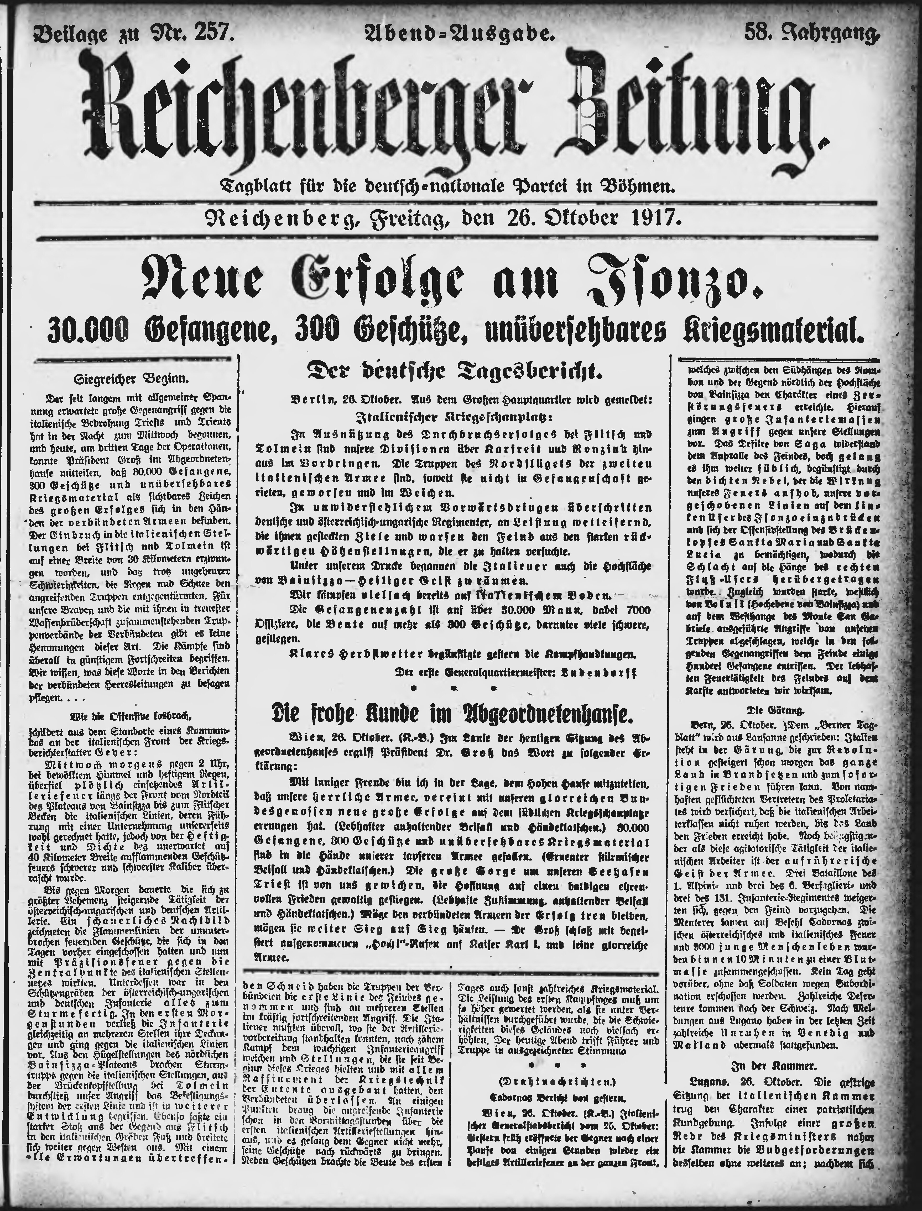 * Datum vydání výtisku: 26.10.1917 Číslo výtisku: 257 Typ výtisku: příloha Poznámky k výtisku: večerní vydání;