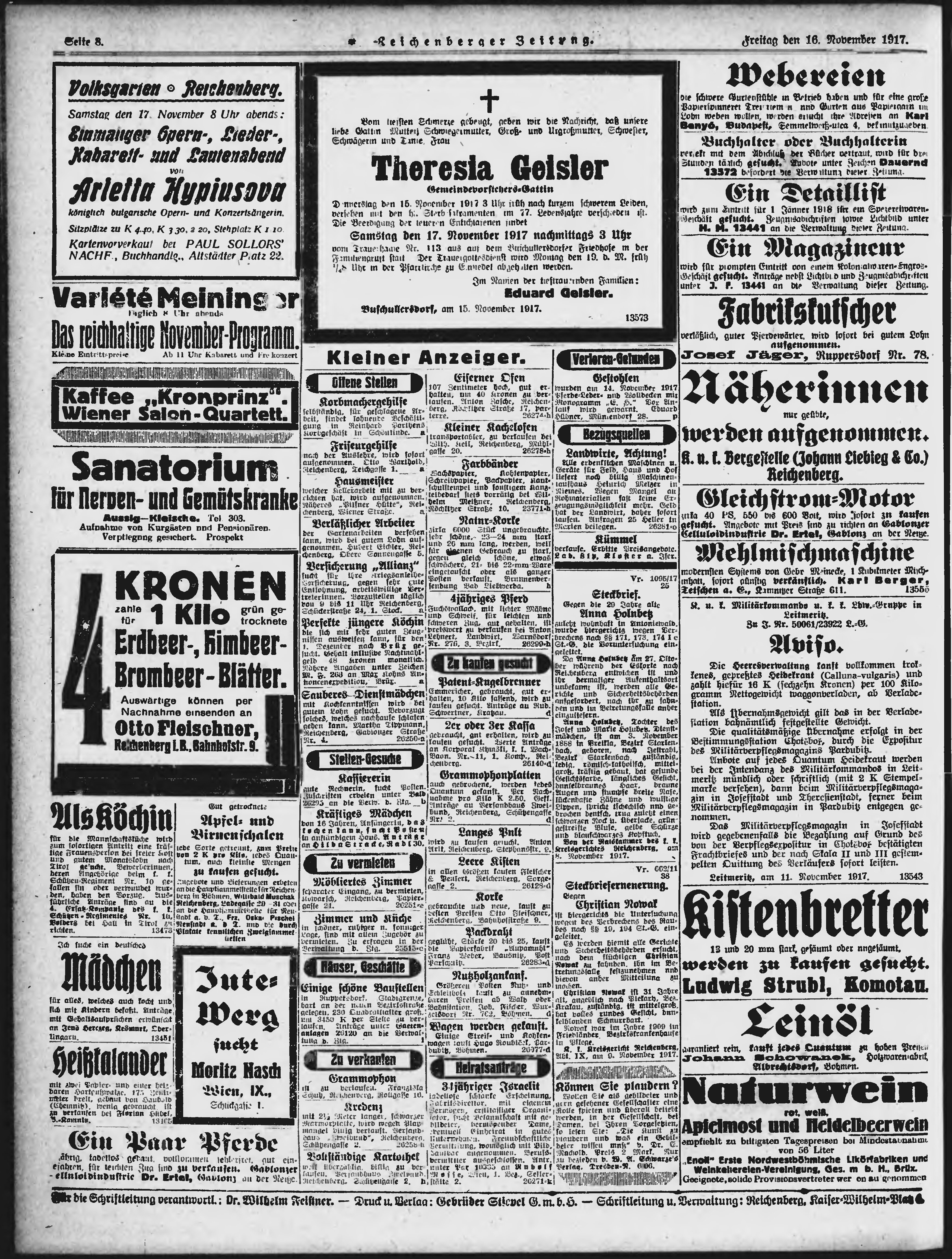* Datum vydání výtisku: 16.11.1917 Číslo výtisku: 274 Poznámky k výtisku: ranní vydání;