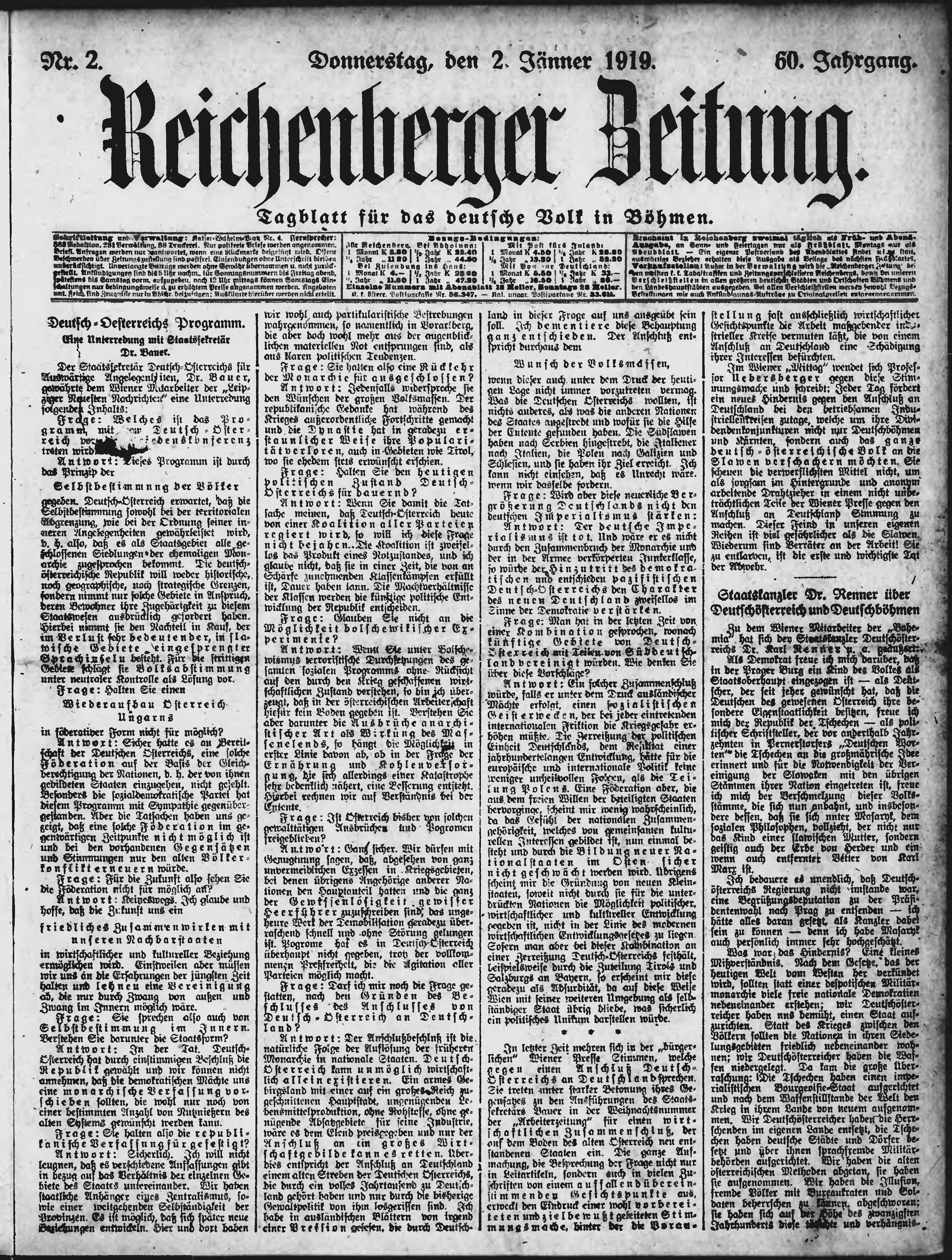 * Datum vydání výtisku: 2.1.1919 Číslo výtisku: 2 Poznámky k výtisku: ranní vydání;