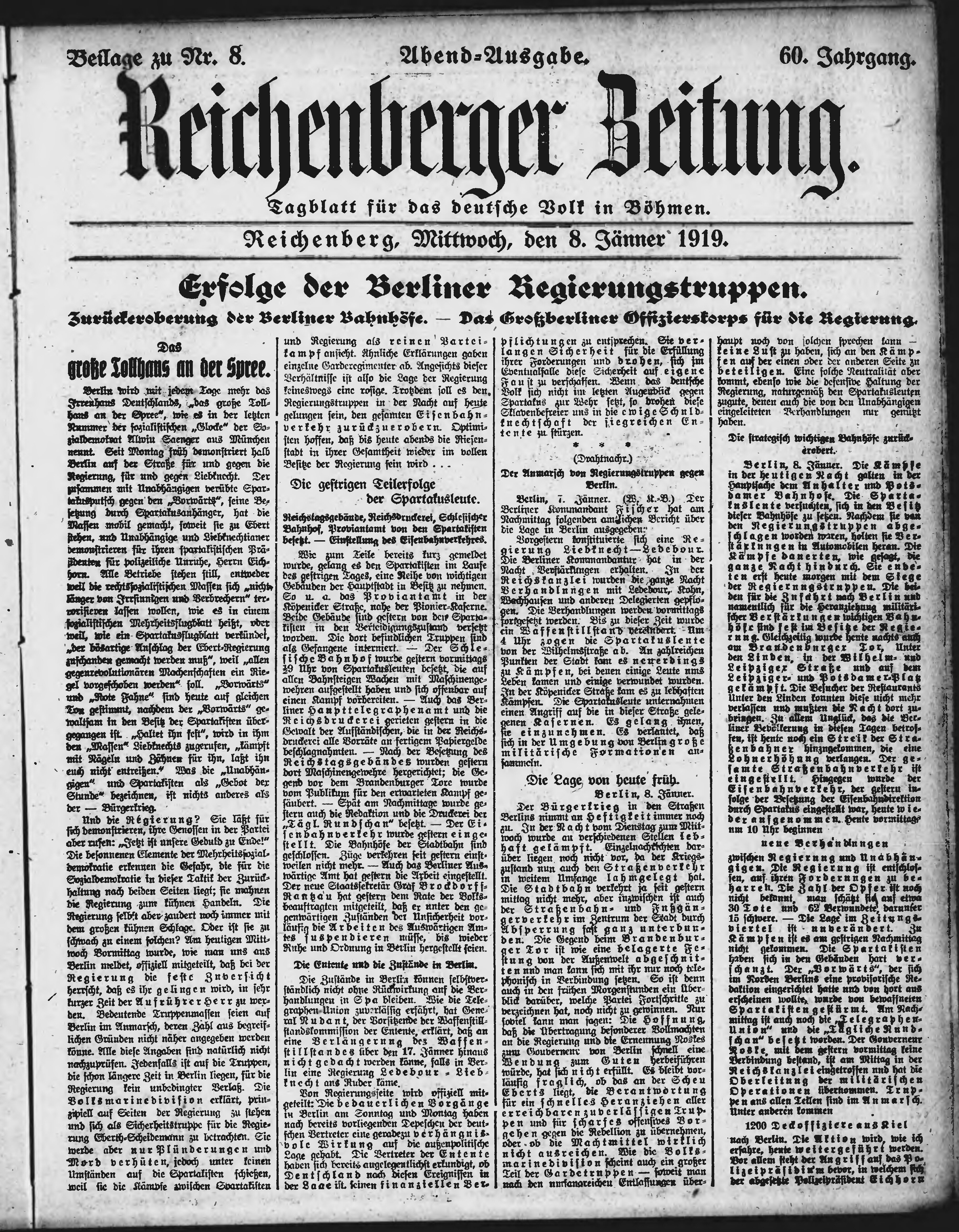 * Datum vydání výtisku: 8.1.1919 Číslo výtisku: 8 Typ výtisku: příloha Poznámky k výtisku: večerní vydání;
