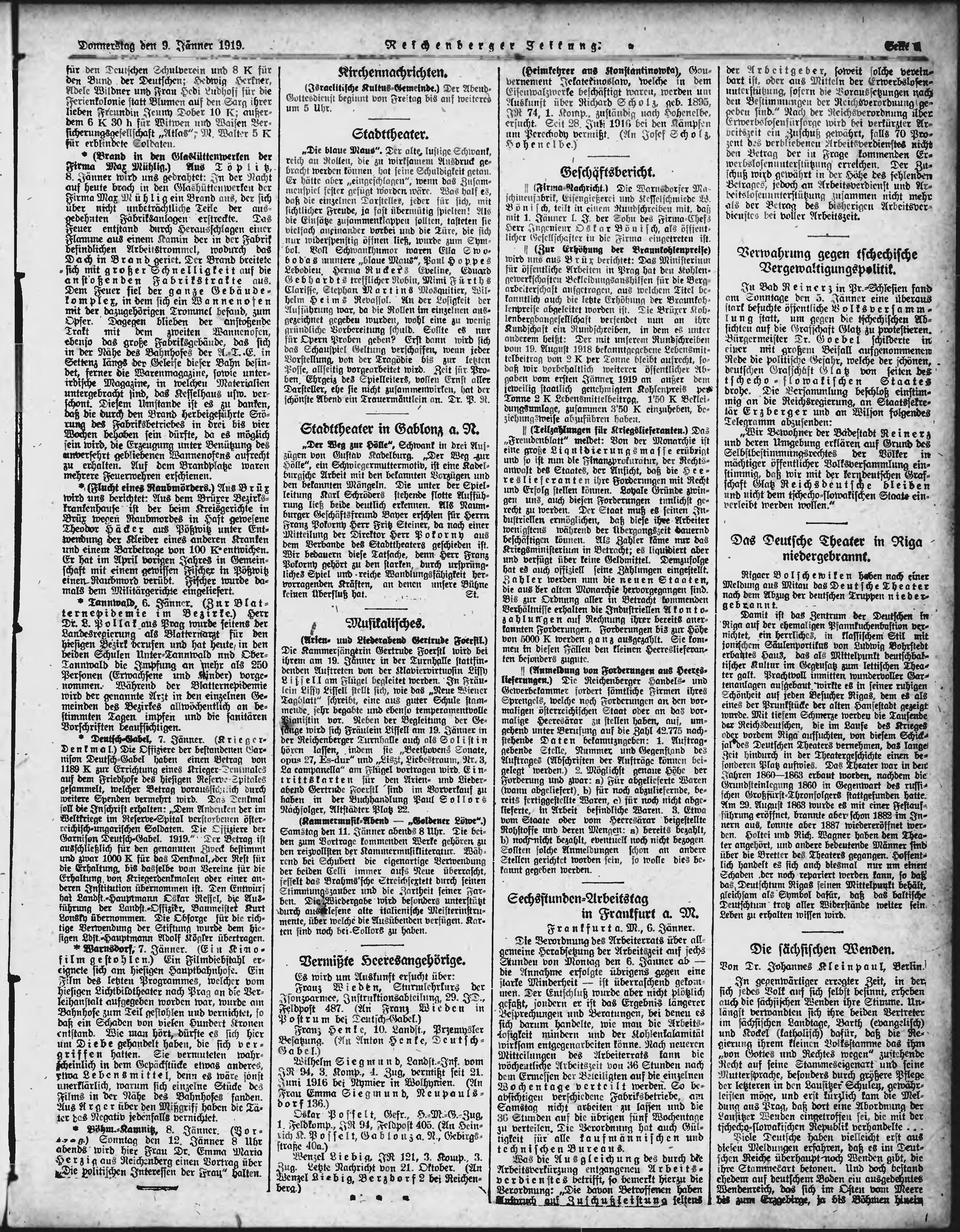 * Datum vydání výtisku: 9.1.1919 Číslo výtisku: 8 Poznámky k výtisku: ranní vydání;
