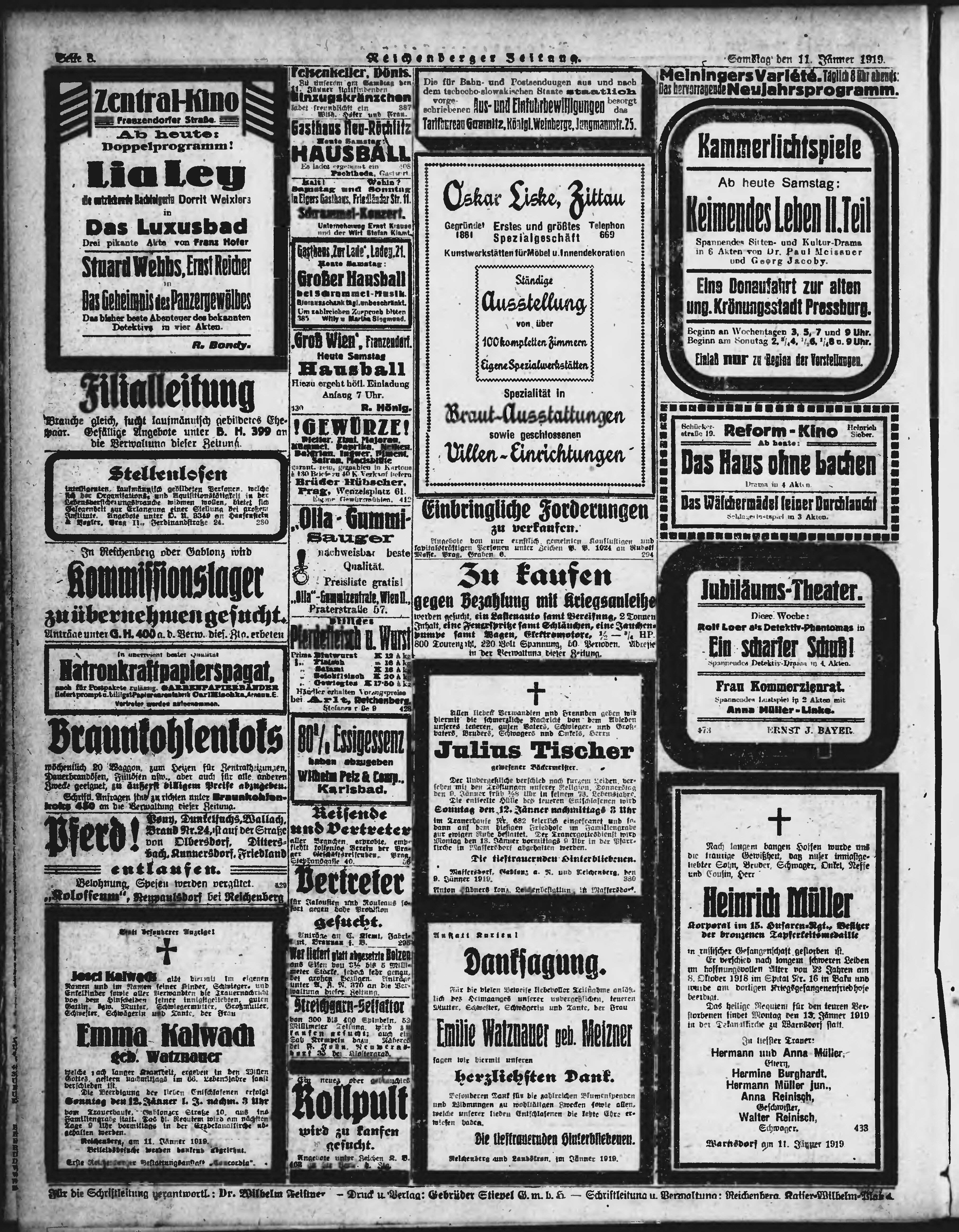 * Datum vydání výtisku: 11.1.1919 Číslo výtisku: 10 Poznámky k výtisku: ranní vydání;