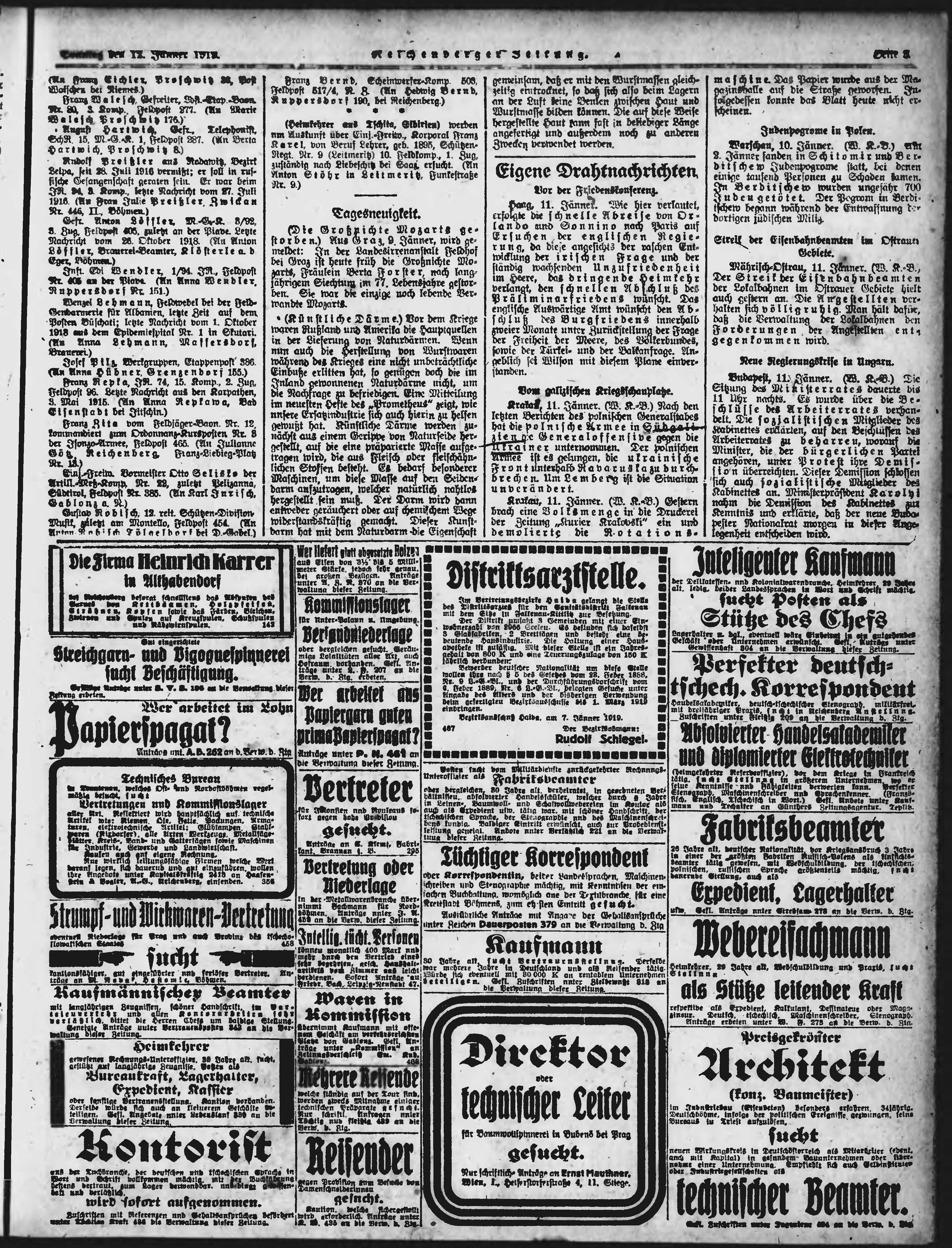 * Datum vydání výtisku: 12.1.1919 Číslo výtisku: 11 Typ výtisku: příloha