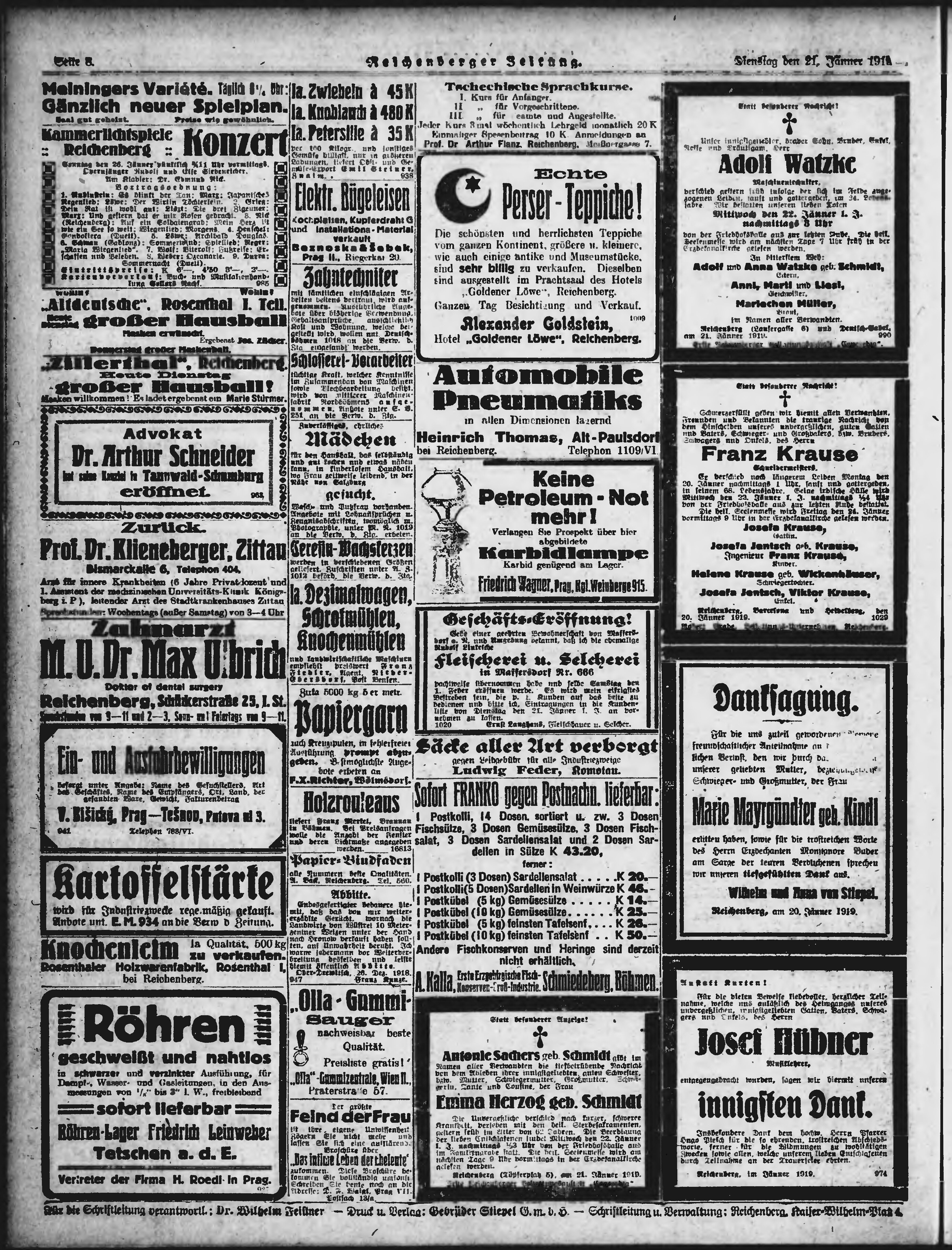 * Datum vydání výtisku: 21.1.1919 Číslo výtisku: 18 Poznámky k výtisku: ranní vydání;