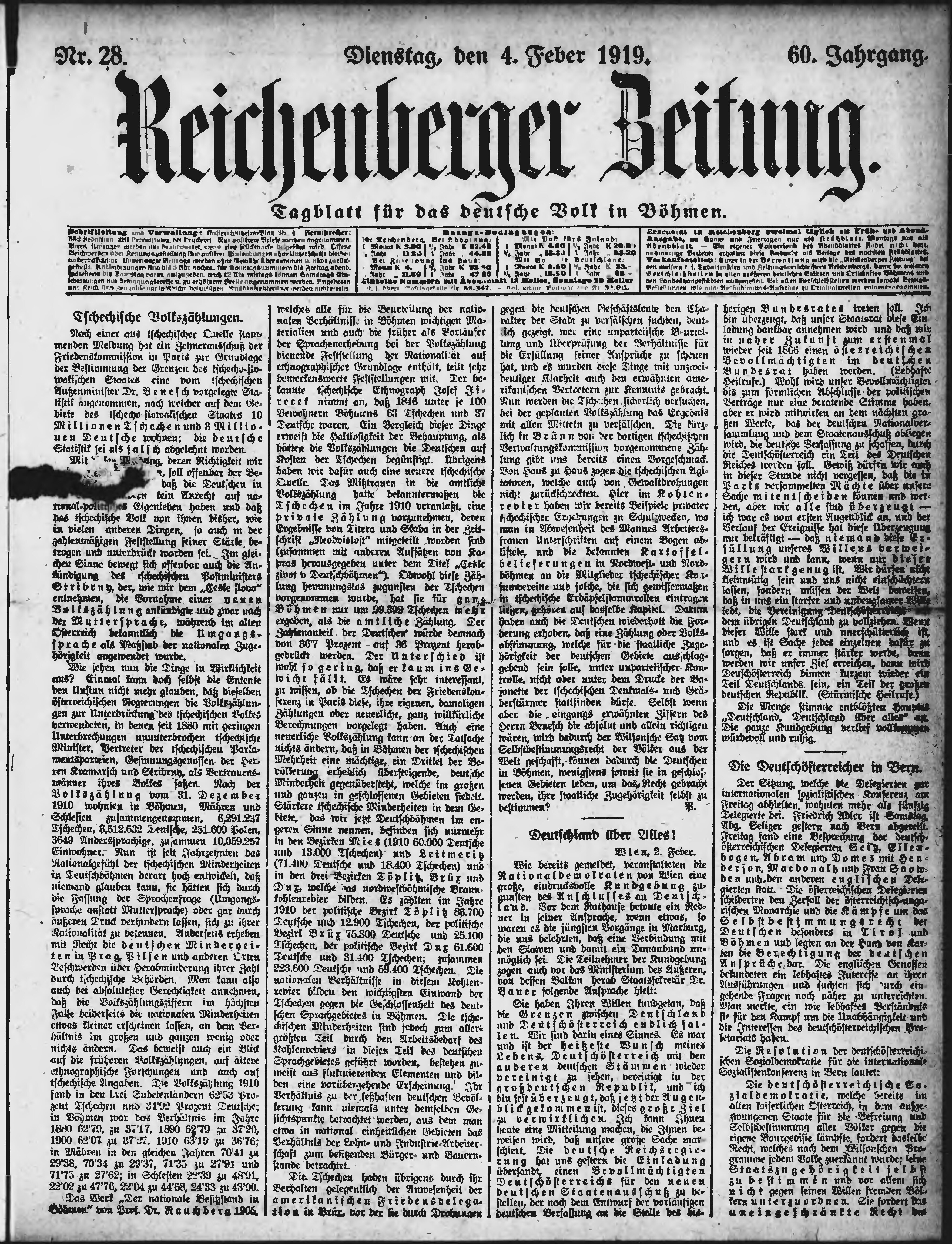 * Datum vydání výtisku: 4.2.1919 Číslo výtisku: 28 Poznámky k výtisku: ranní vydání;