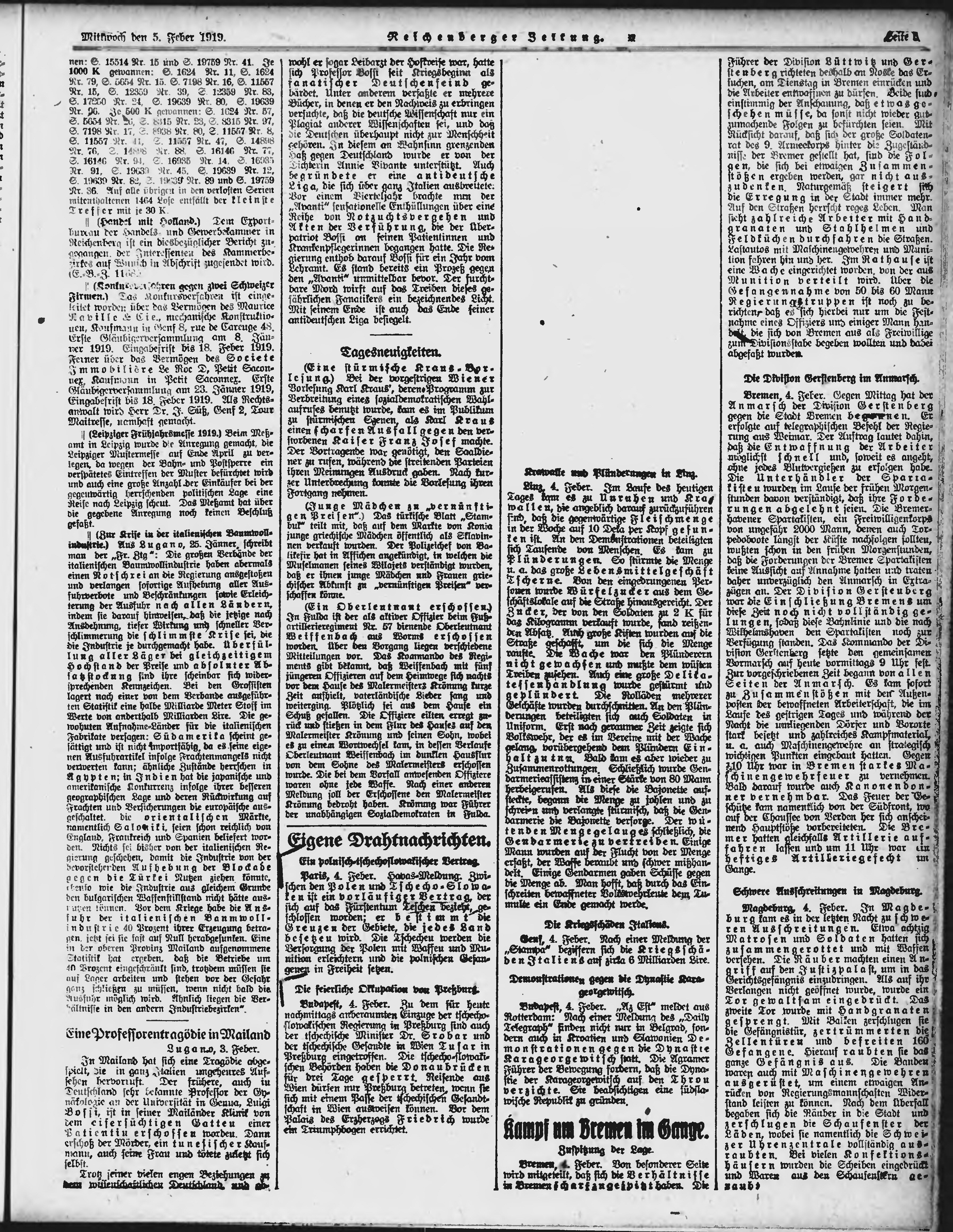 * Datum vydání výtisku: 5.2.1919 Číslo výtisku: 29 Poznámky k výtisku: ranní vydání;