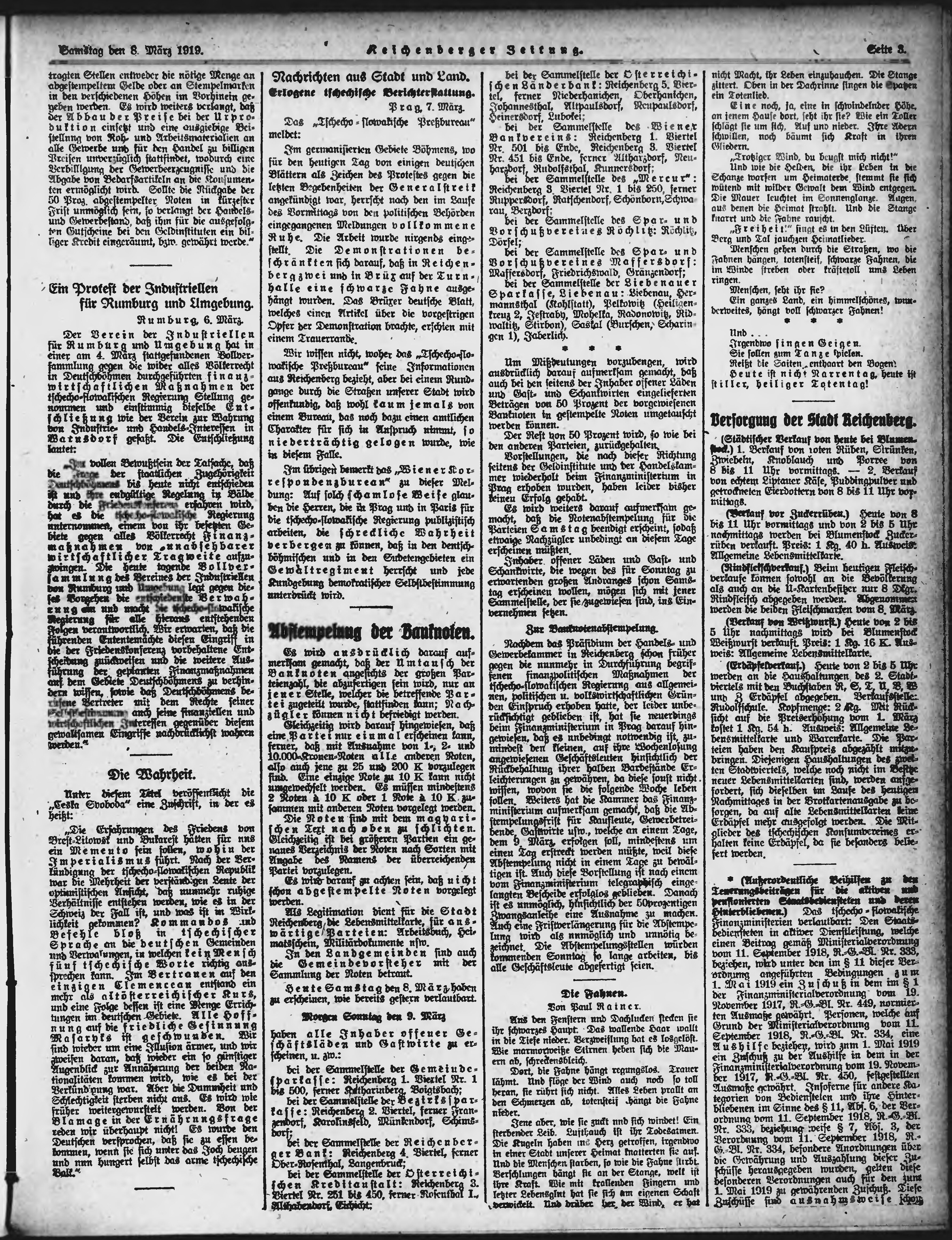 * Datum vydání výtisku: 8.3.1919 Číslo výtisku: 56 Poznámky k výtisku: ranní vydání;