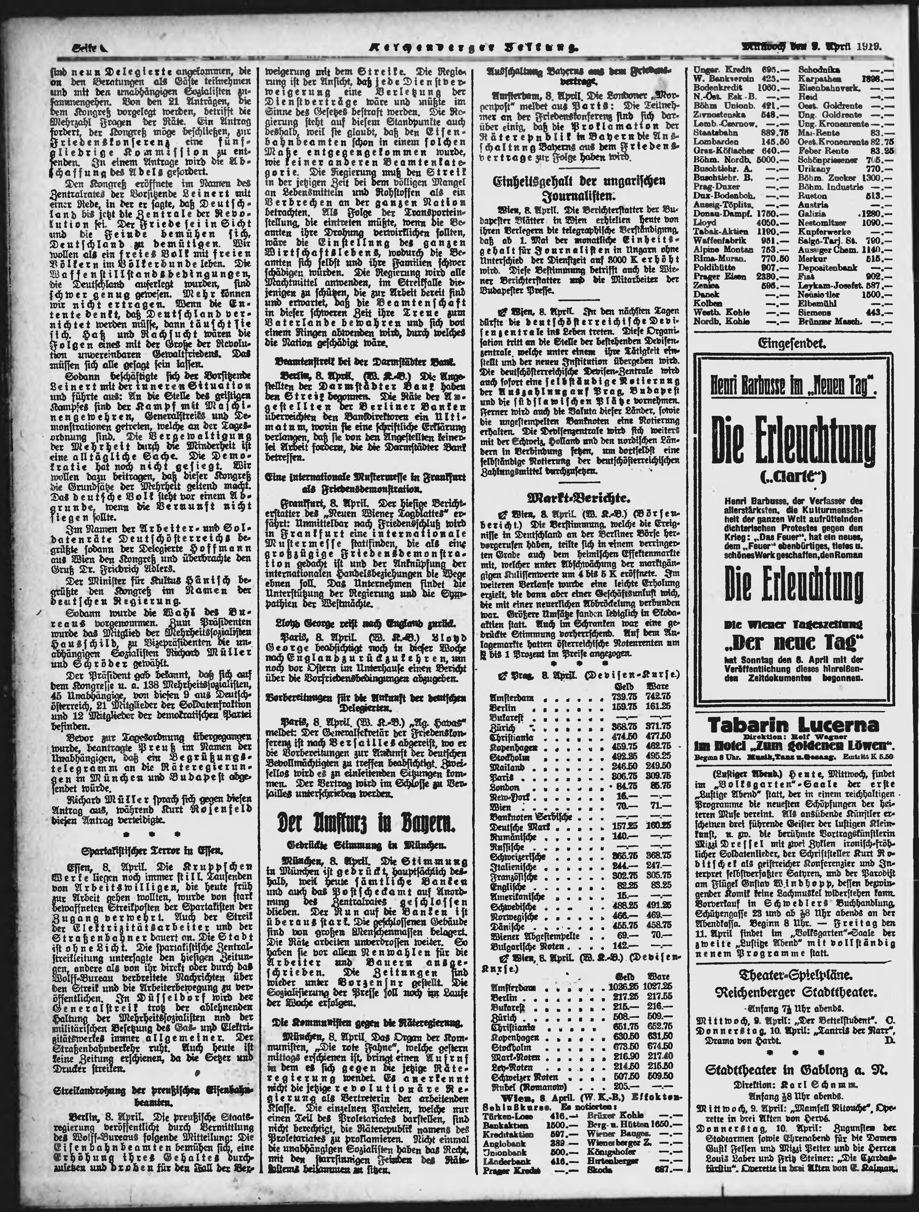 * Datum vydání výtisku: 9.4.1919 Číslo výtisku: 83 Poznámky k výtisku: ranní vydání;
