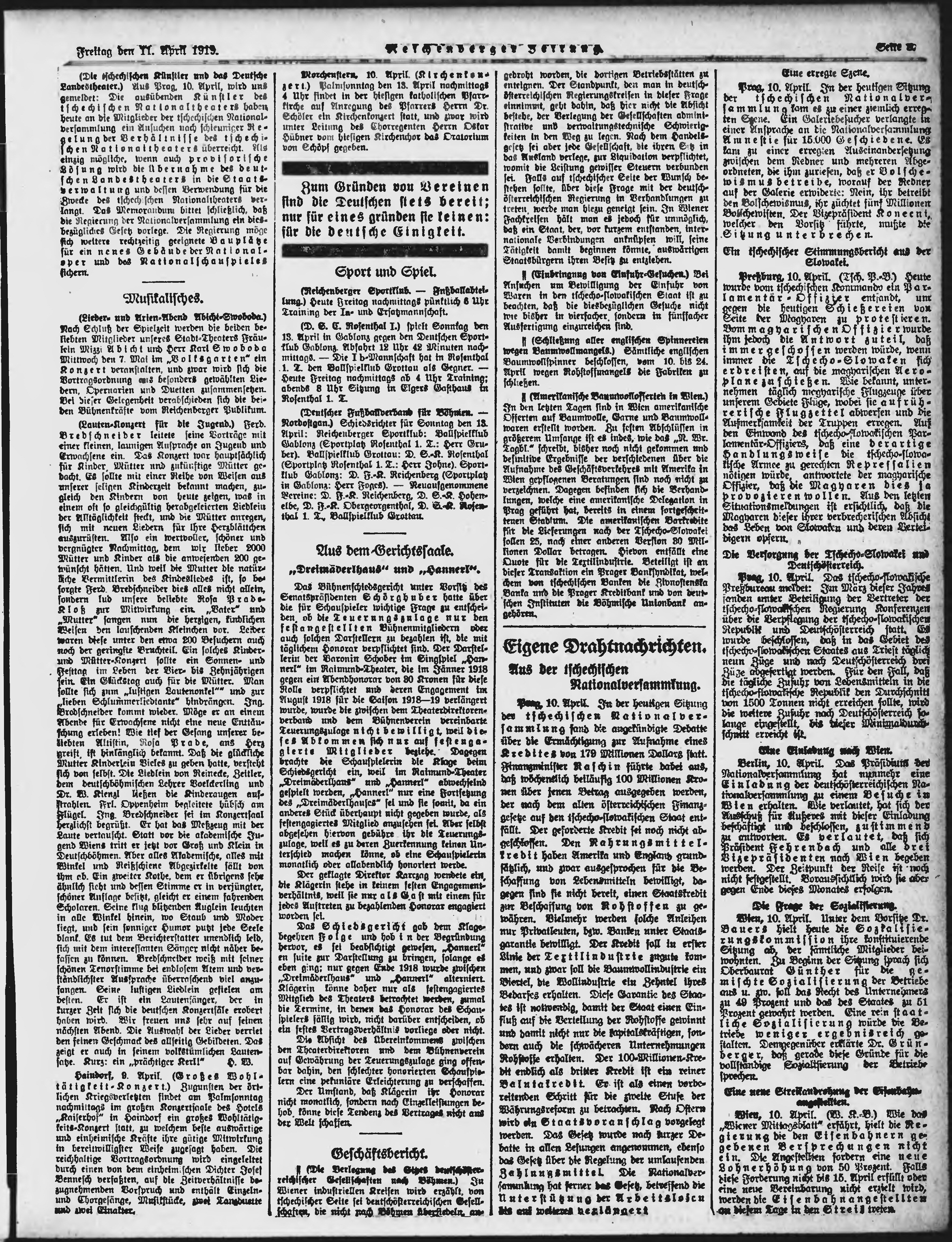 * Datum vydání výtisku: 11.4.1919 Číslo výtisku: 85 Poznámky k výtisku: ranní vydání;