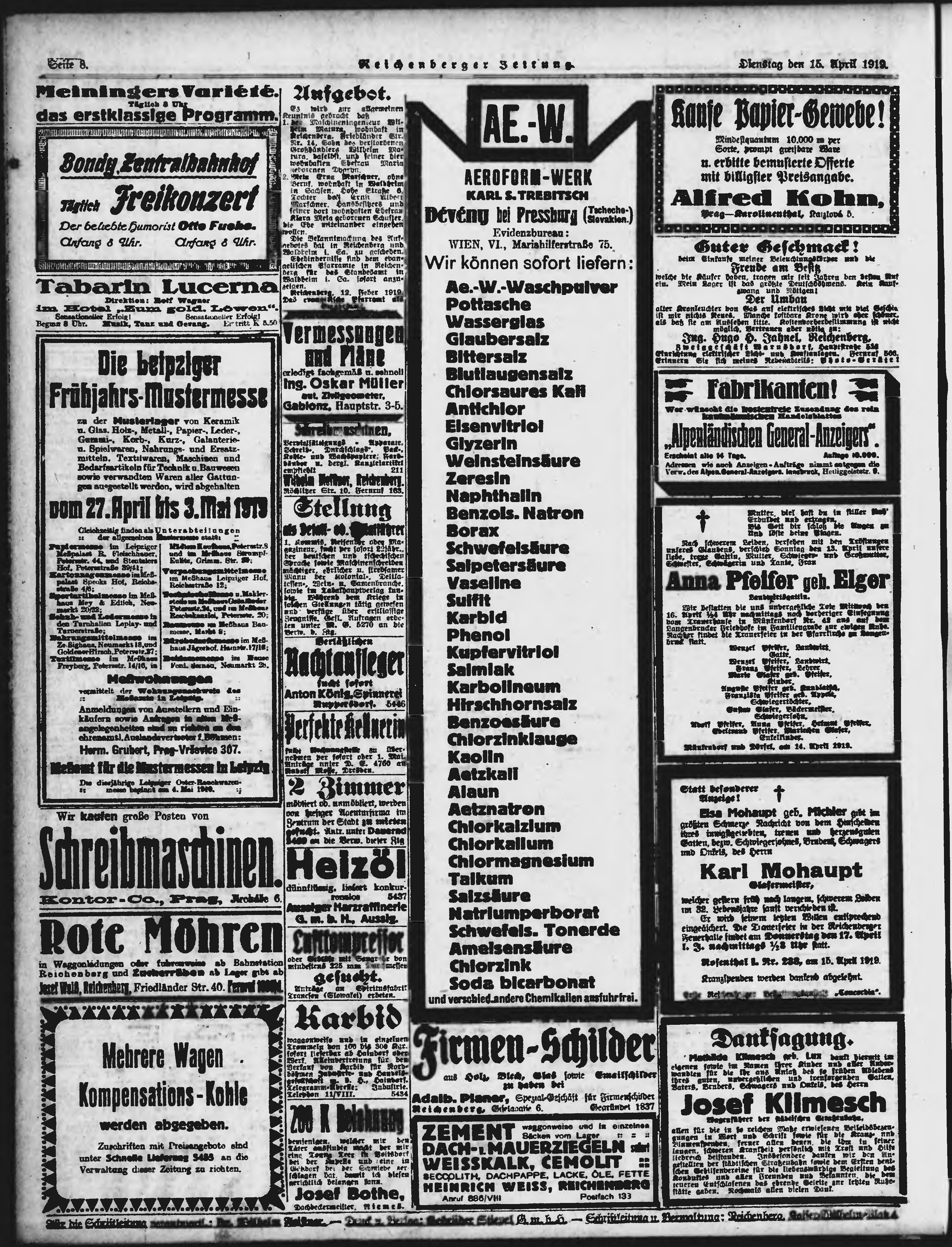 * Datum vydání výtisku: 15.4.1919 Číslo výtisku: 88 Poznámky k výtisku: ranní vydání;
