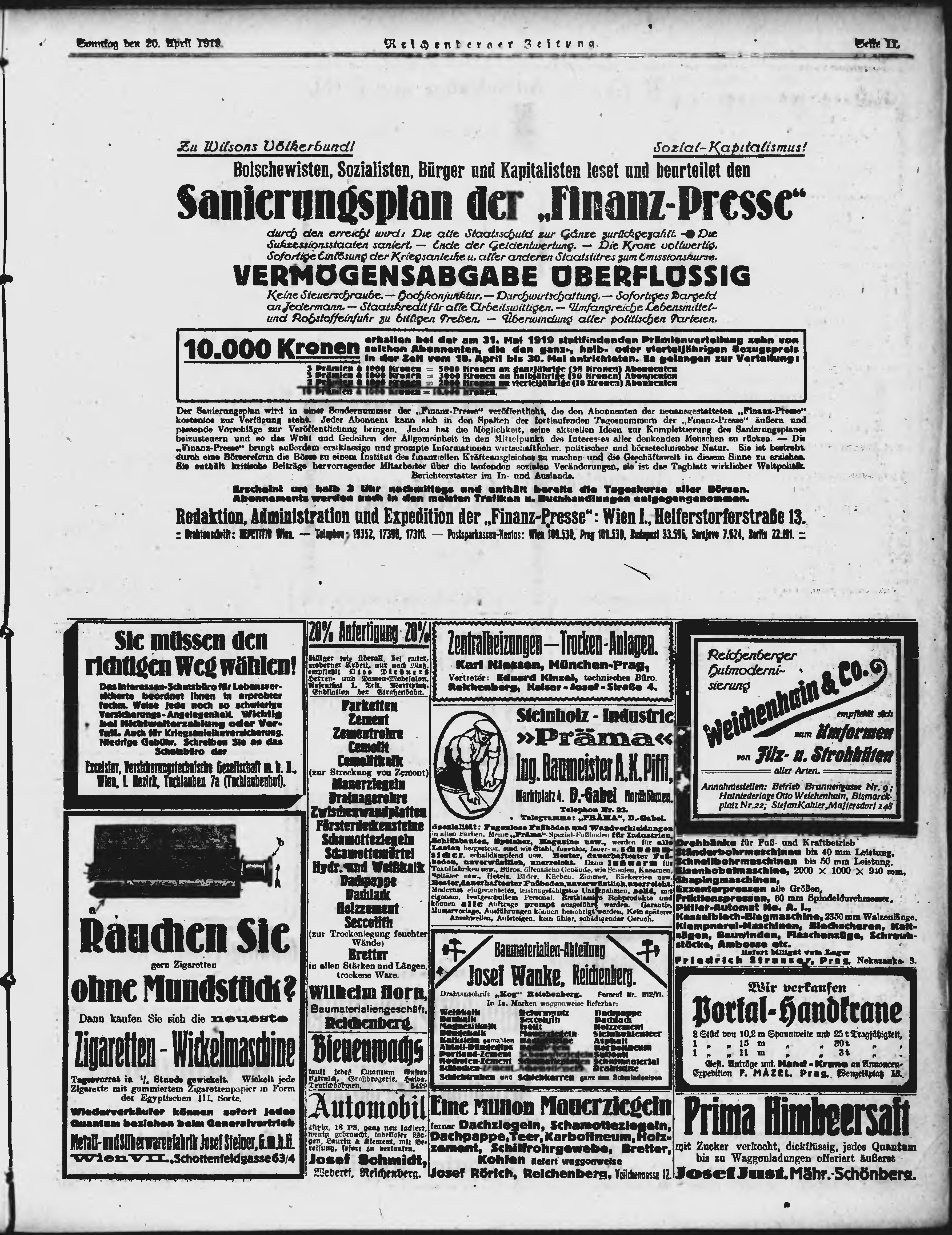 * Datum vydání výtisku: 20.4.1919 Číslo výtisku: 93 Poznámky k výtisku: ranní vydání;