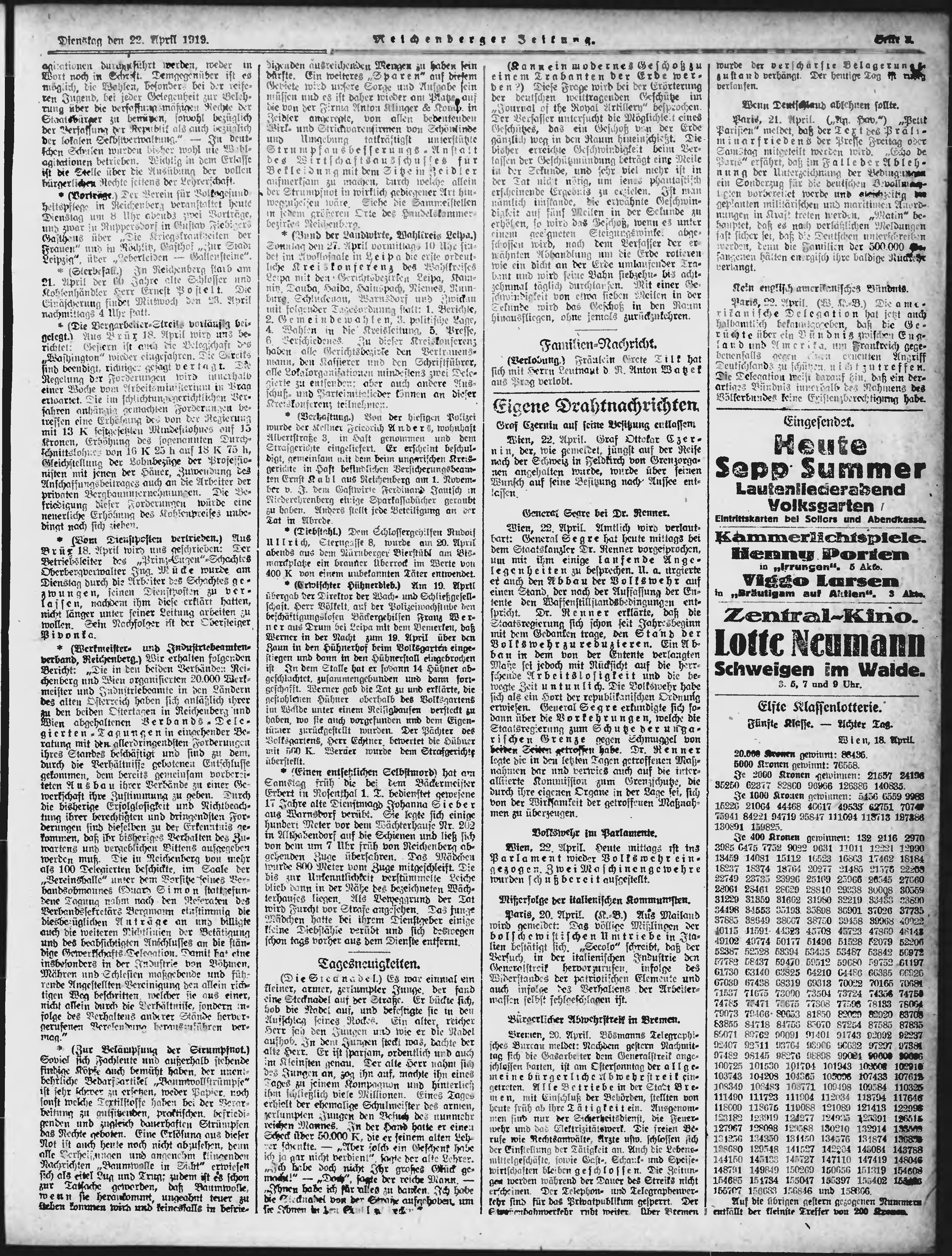 * Datum vydání výtisku: 22.4.1919 Číslo výtisku: 94 Typ výtisku: příloha Poznámky k výtisku: večerní vydání;