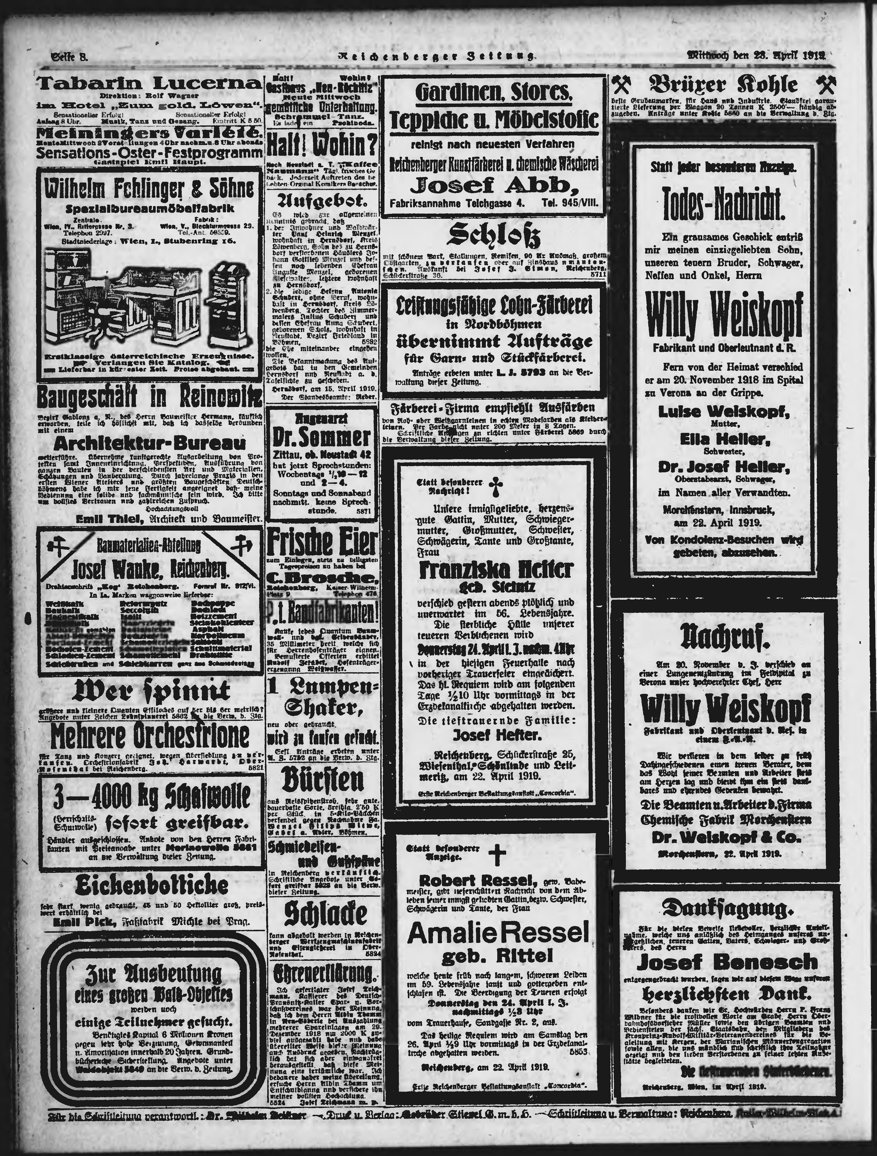 * Datum vydání výtisku: 23.4.1919 Číslo výtisku: 94 Poznámky k výtisku: ranní vydání;