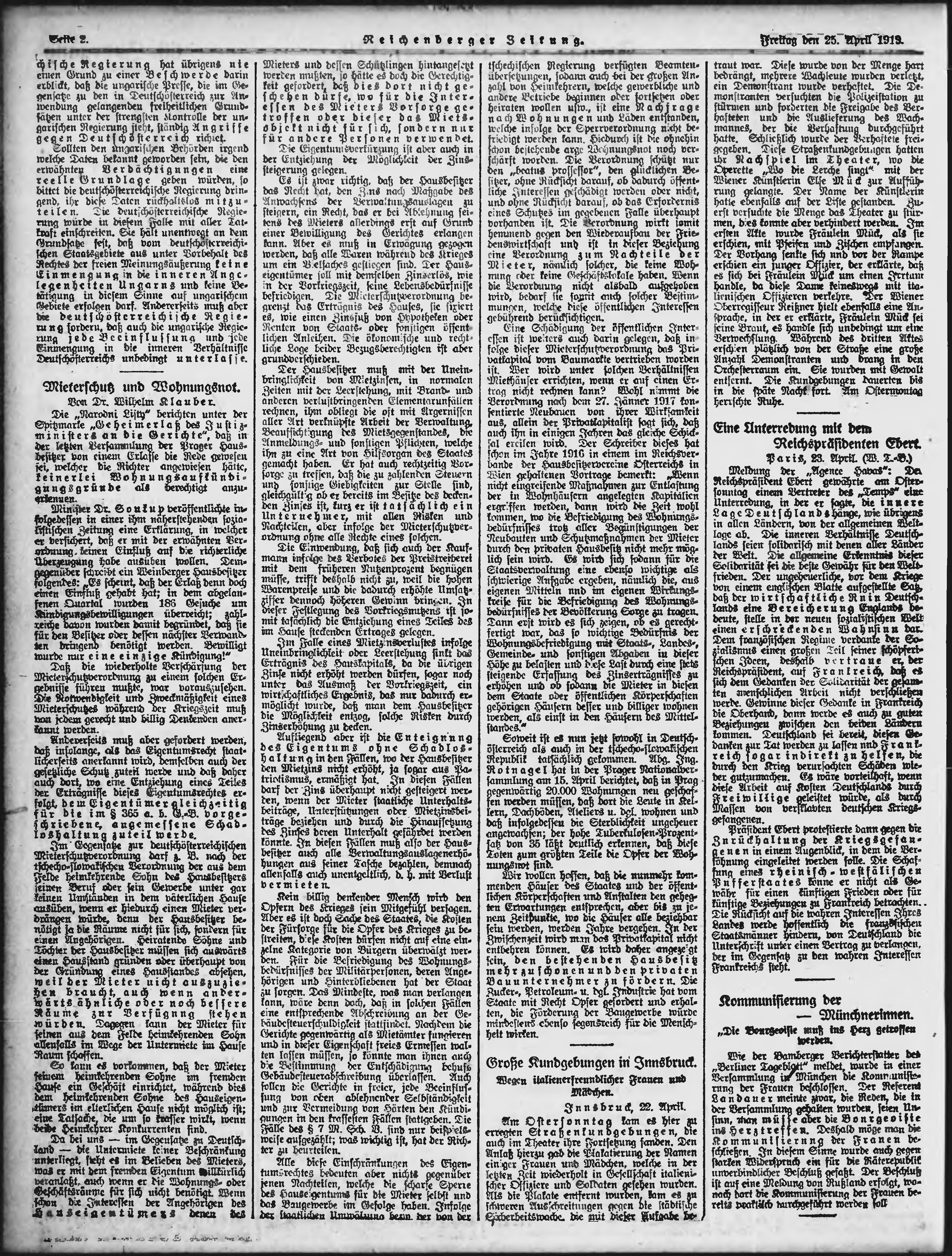 * Datum vydání výtisku: 25.4.1919 Číslo výtisku: 96 Poznámky k výtisku: ranní vydání;