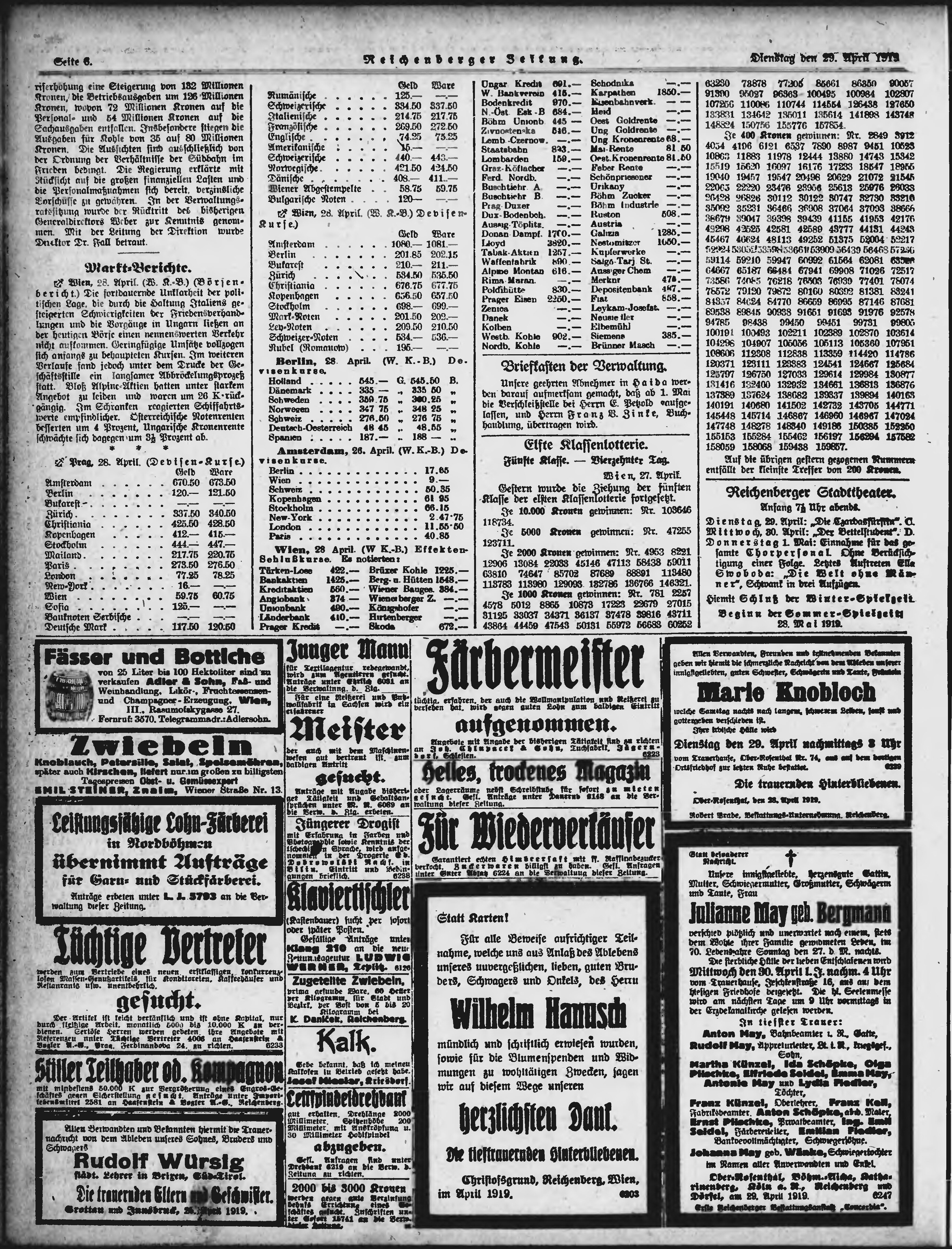 * Datum vydání výtisku: 29.4.1919 Číslo výtisku: 99 Poznámky k výtisku: ranní vydání;