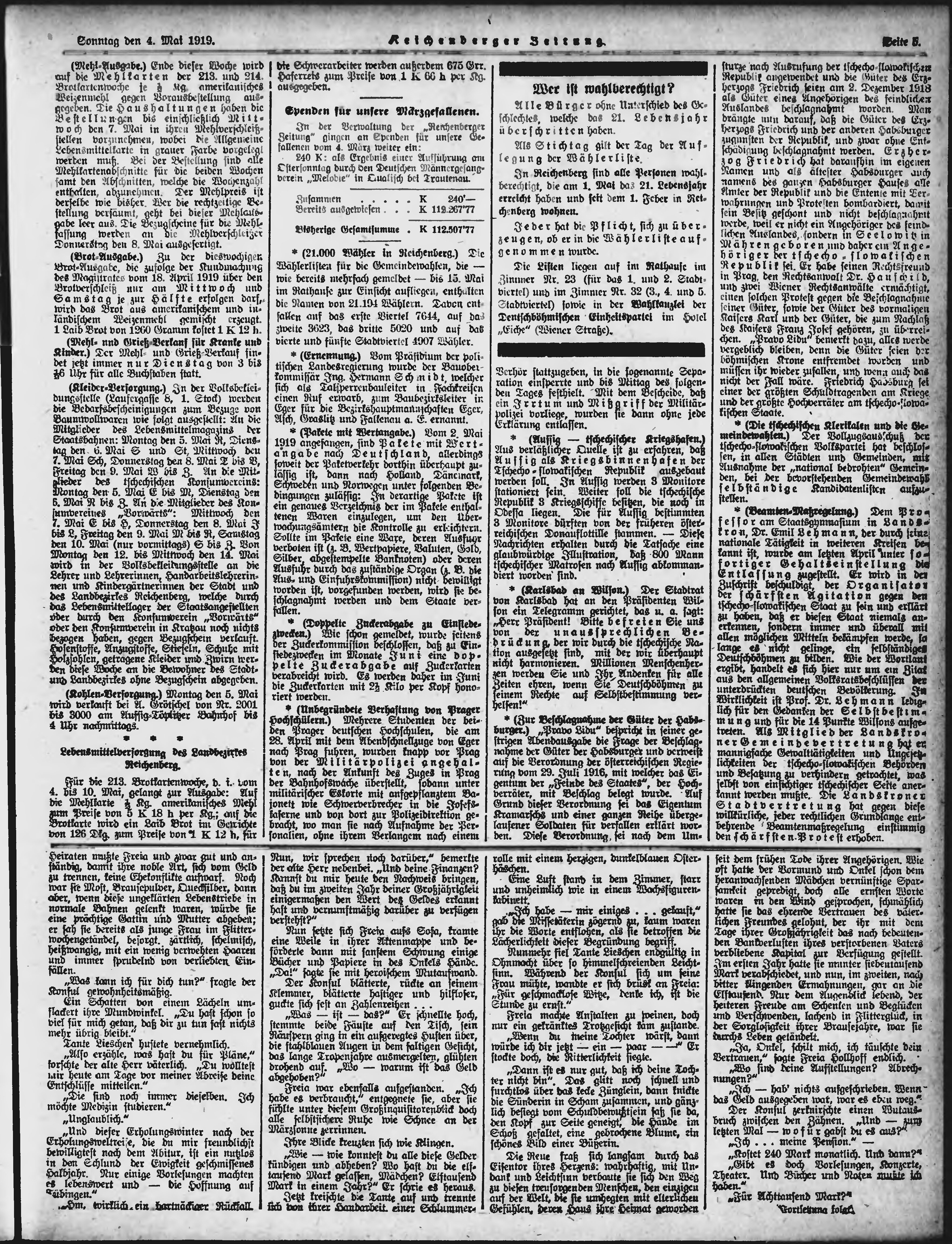 * Datum vydání výtisku: 4.5.1919 Číslo výtisku: 103 Poznámky k výtisku: ranní vydání;