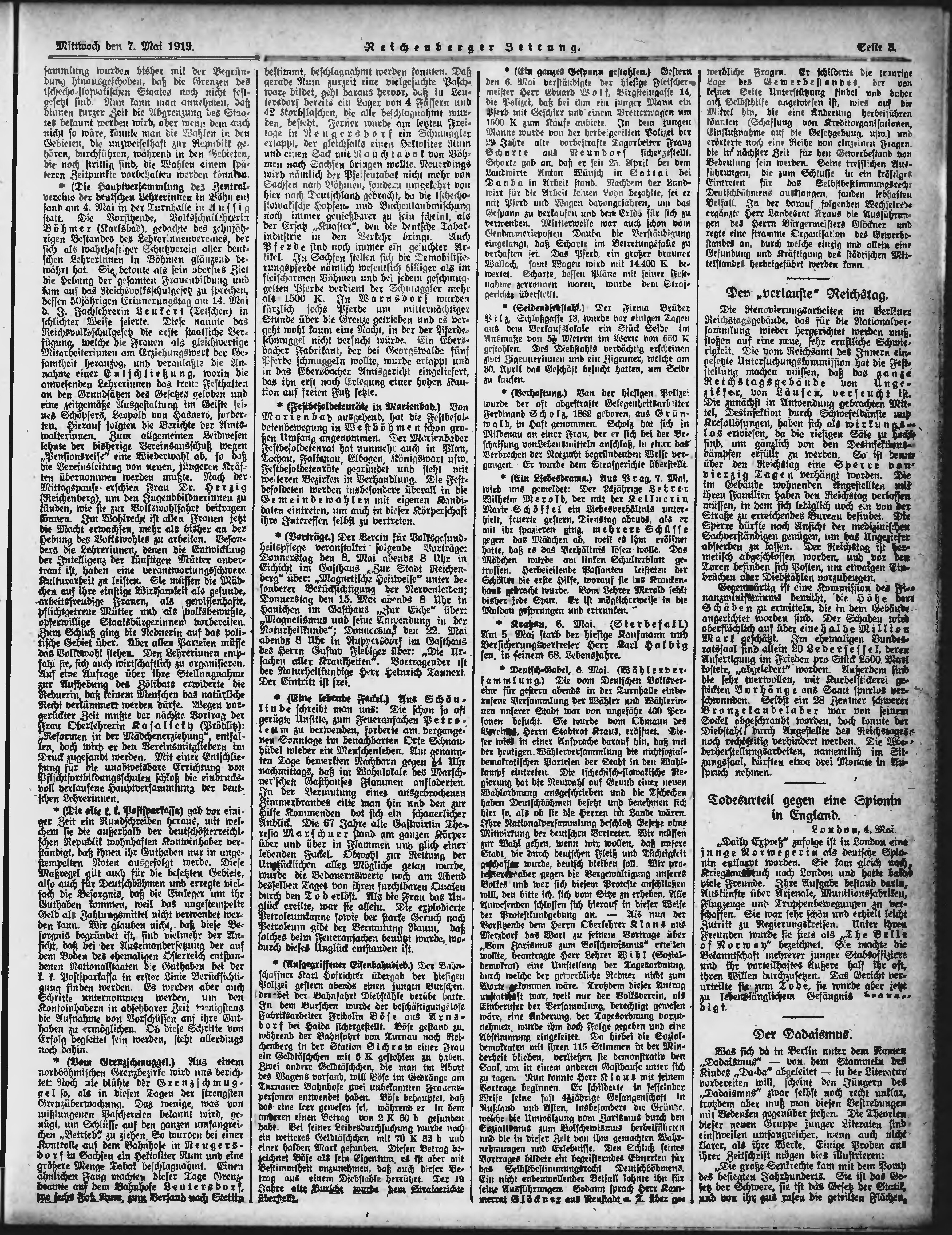 * Datum vydání výtisku: 7.5.1919 Číslo výtisku: 106 Typ výtisku: příloha Poznámky k výtisku: večerní vydání;