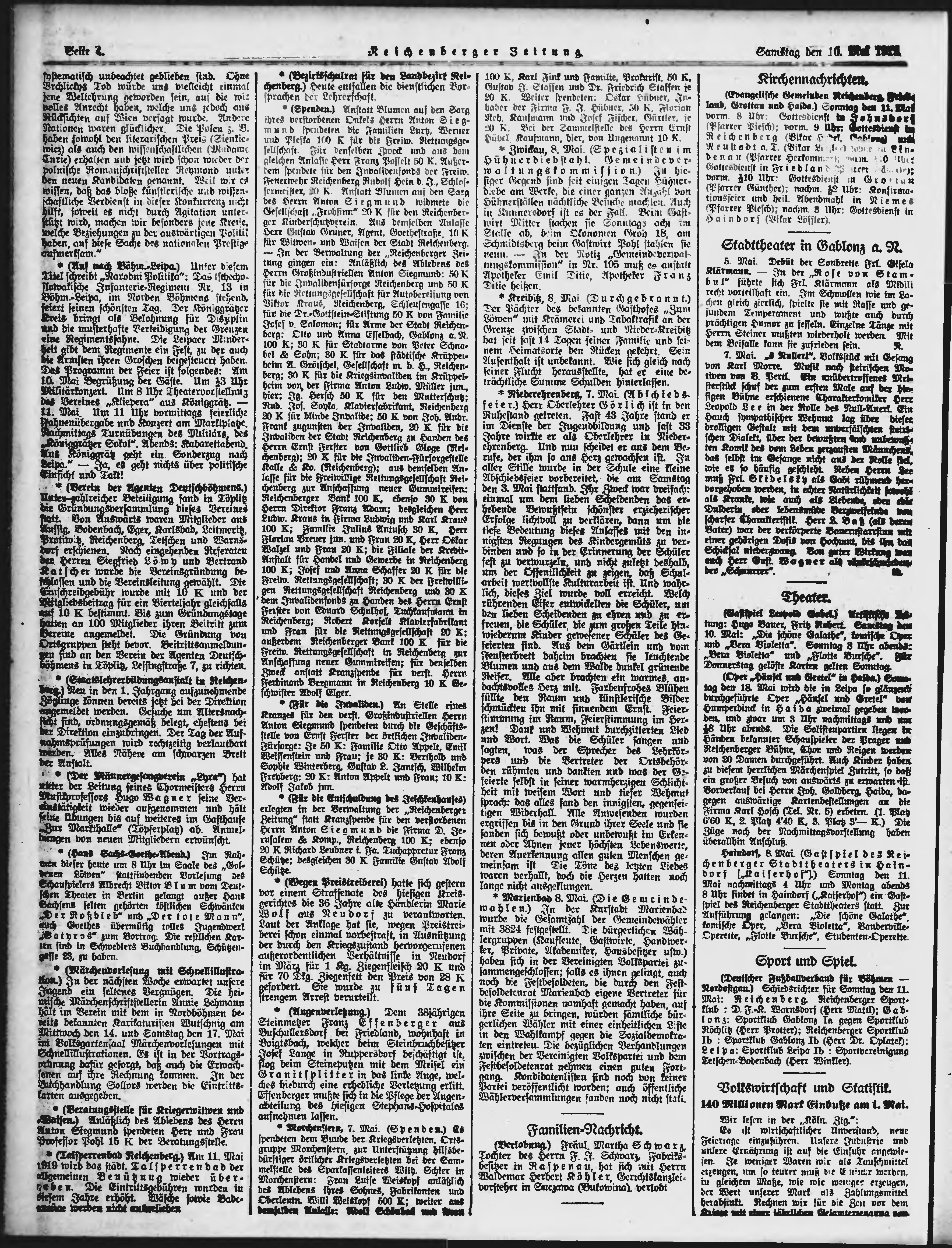 * Datum vydání výtisku: 10.5.1919 Číslo výtisku: 108 Poznámky k výtisku: ranní vydání;