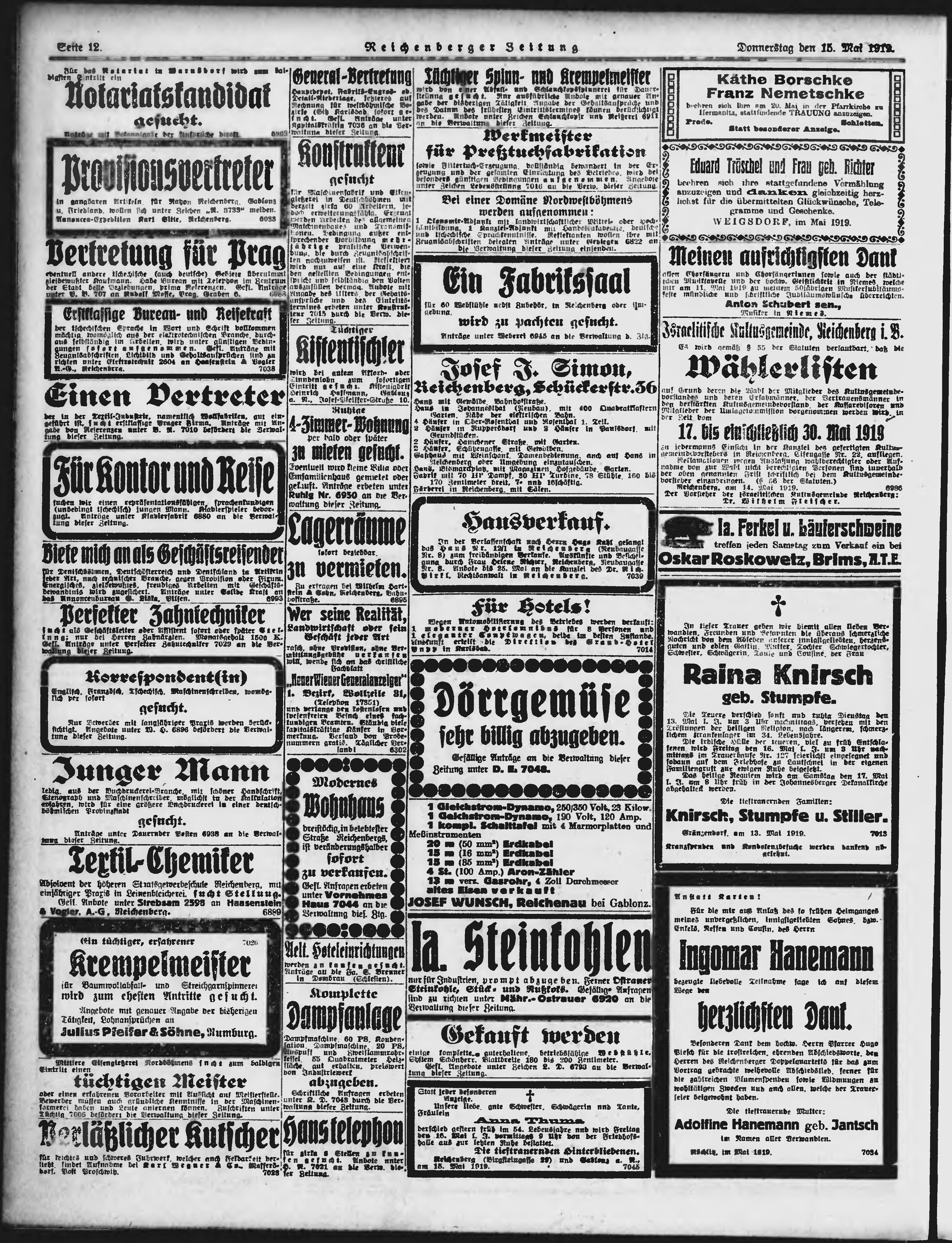 * Datum vydání výtisku: 15.5.1919 Číslo výtisku: 112 Poznámky k výtisku: ranní vydání;