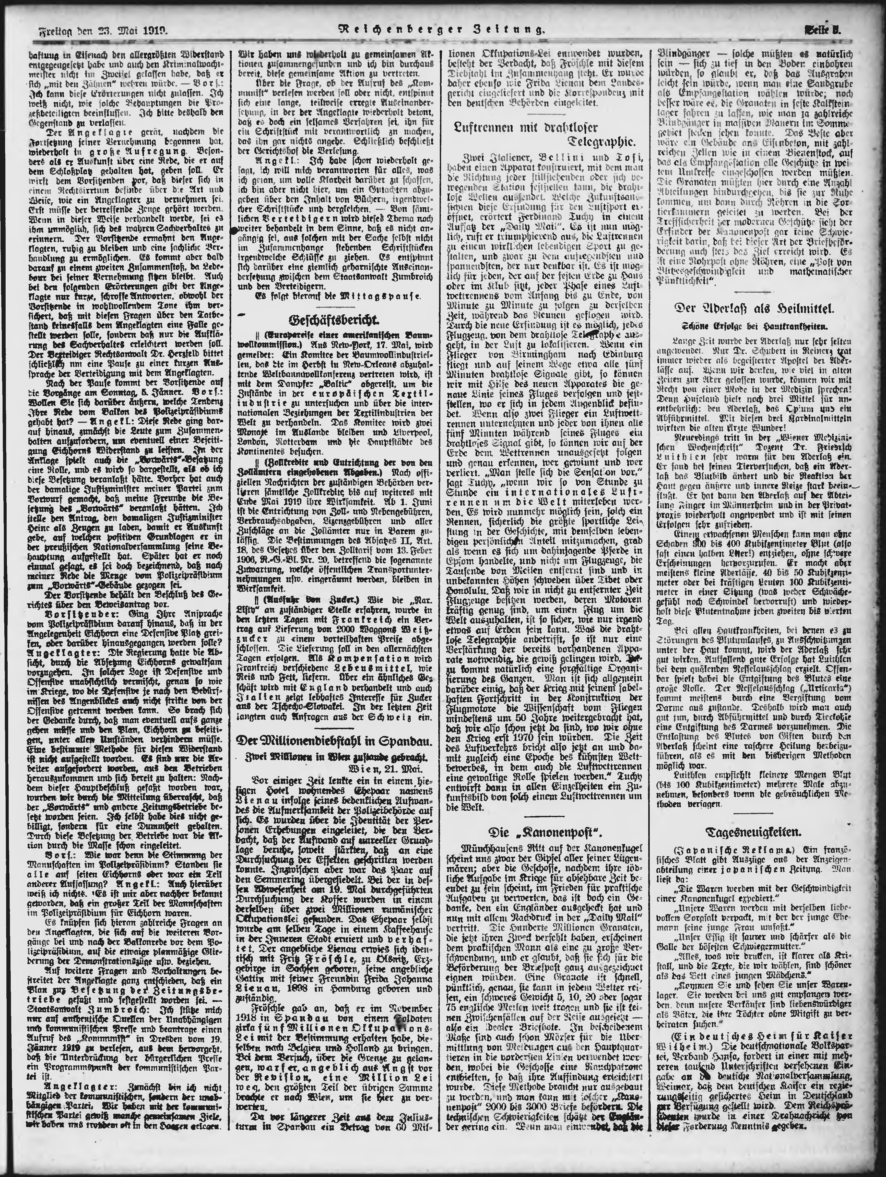 * Datum vydání výtisku: 23.5.1919 Číslo výtisku: 119 Poznámky k výtisku: ranní vydání;