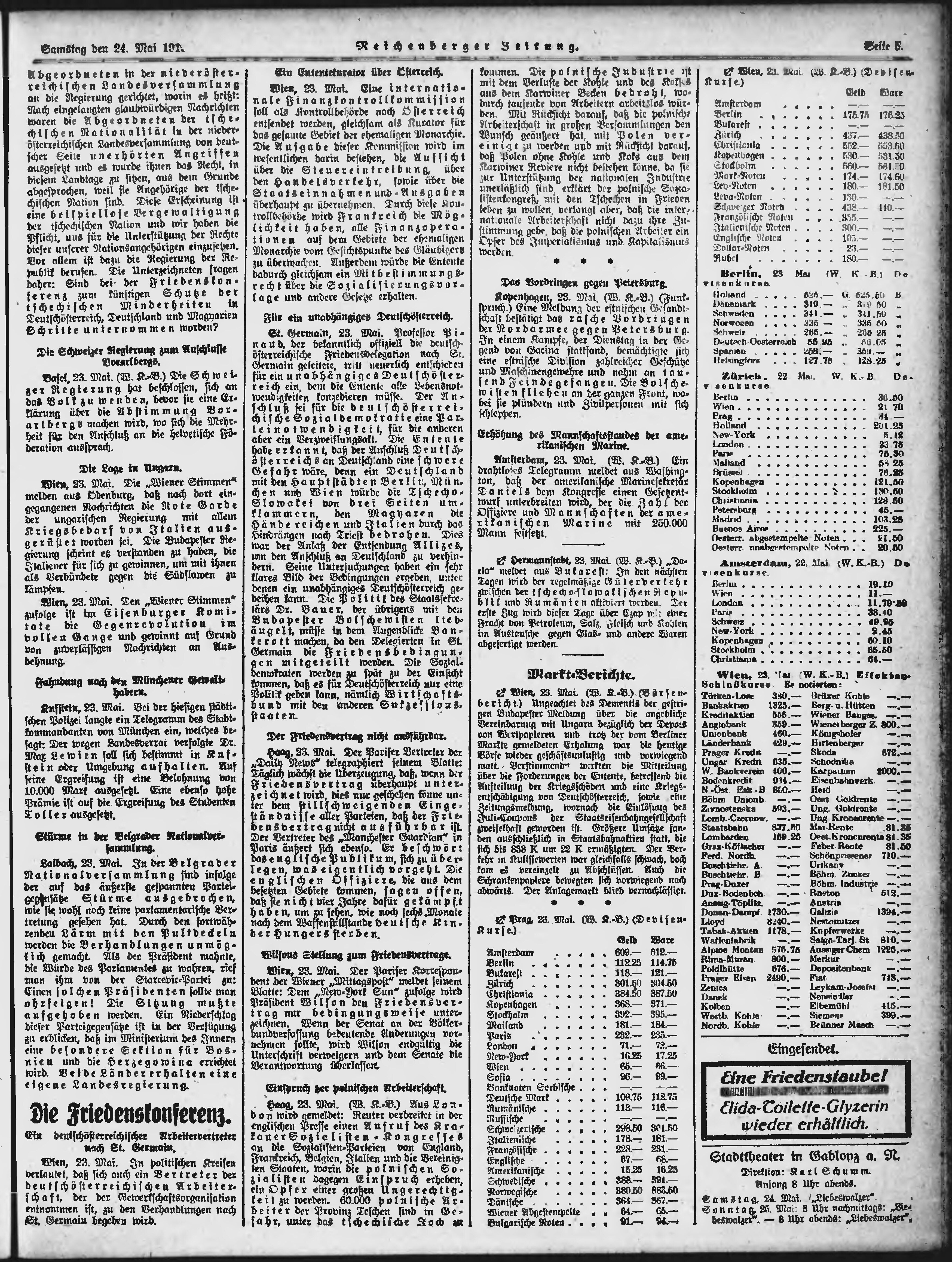 * Datum vydání výtisku: 24.5.1919 Číslo výtisku: 120 Poznámky k výtisku: ranní vydání;