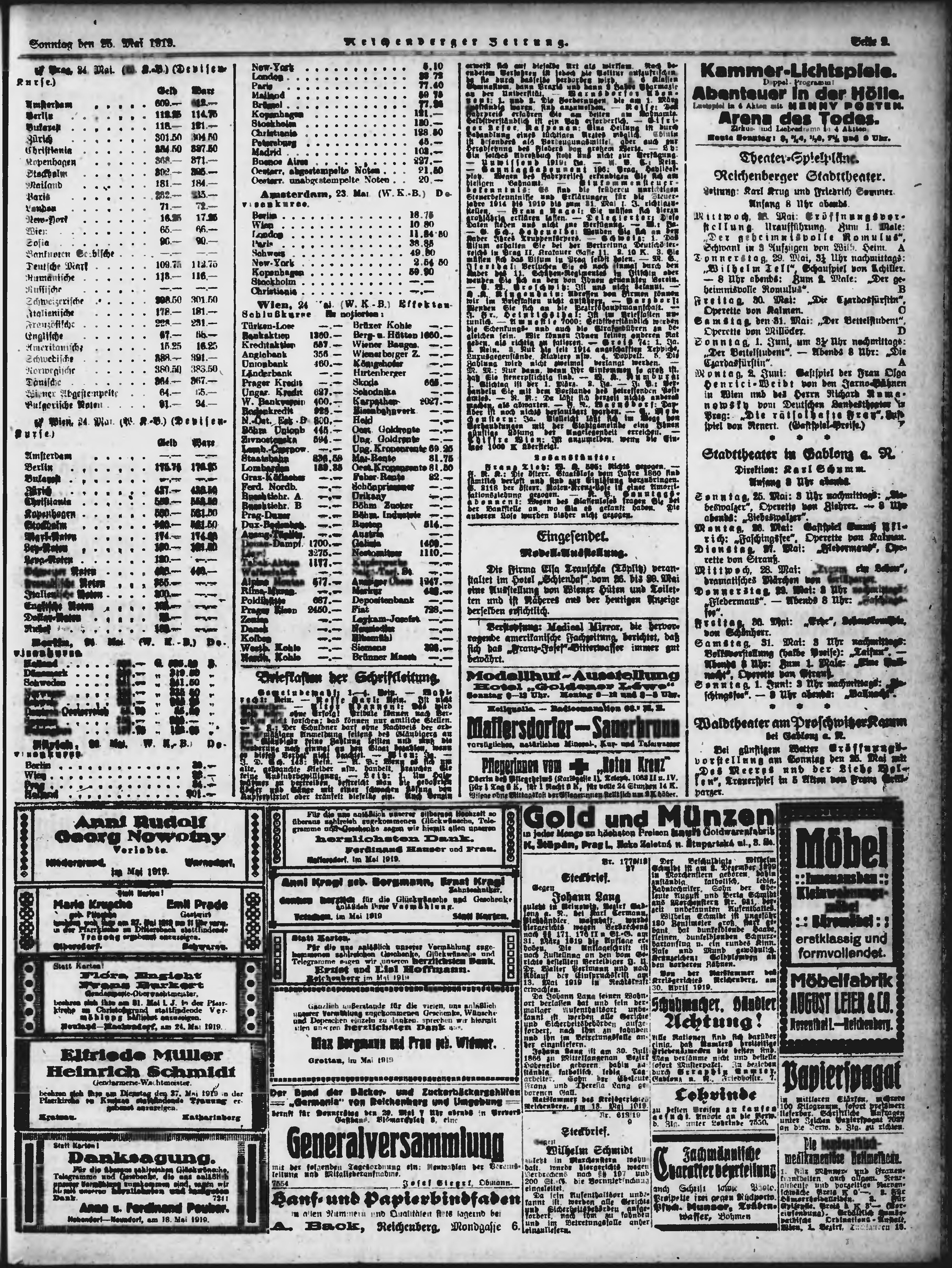 * Datum vydání výtisku: 25.5.1919 Číslo výtisku: 121 Poznámky k výtisku: ranní vydání;