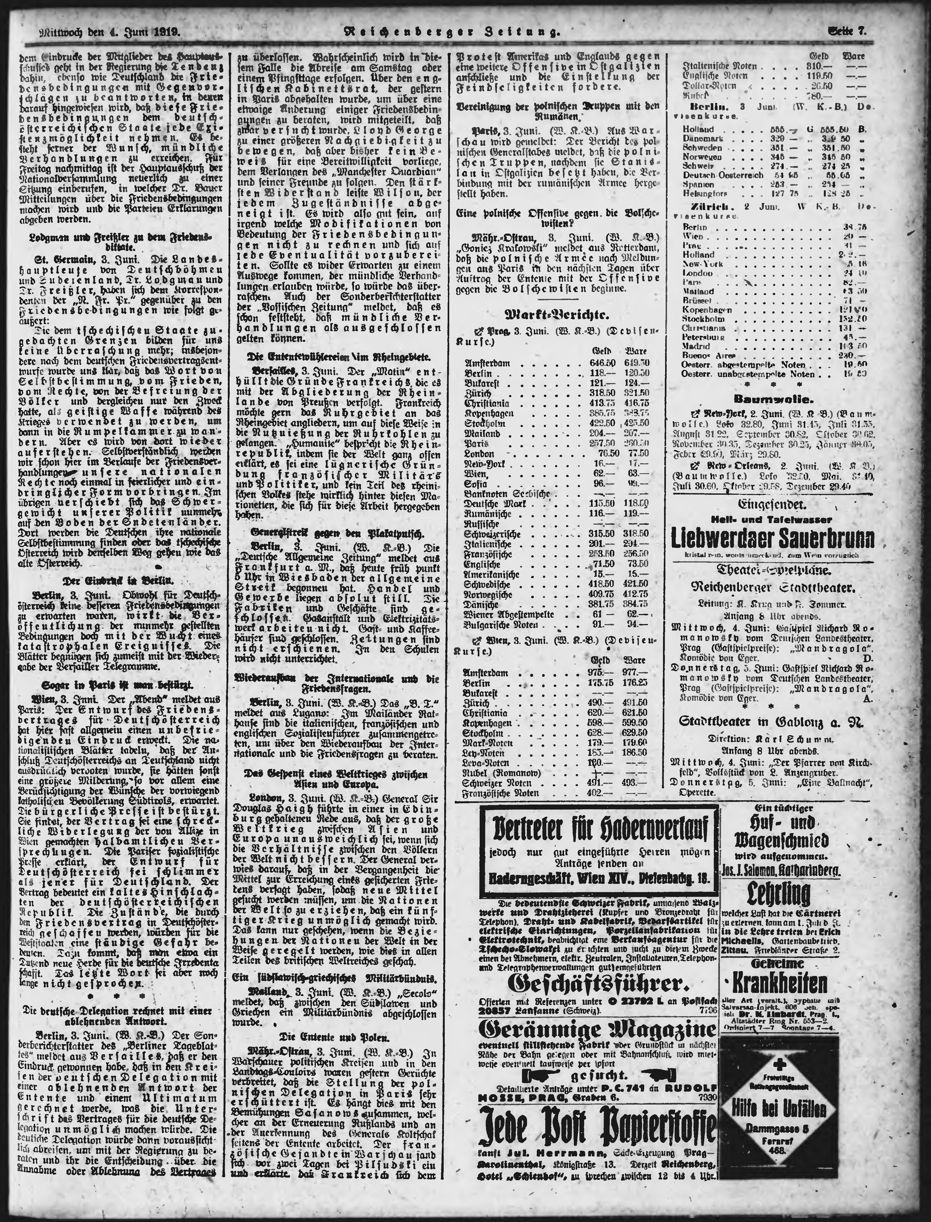 * Datum vydání výtisku: 4.6.1919 Číslo výtisku: 129 Poznámky k výtisku: ranní vydání;