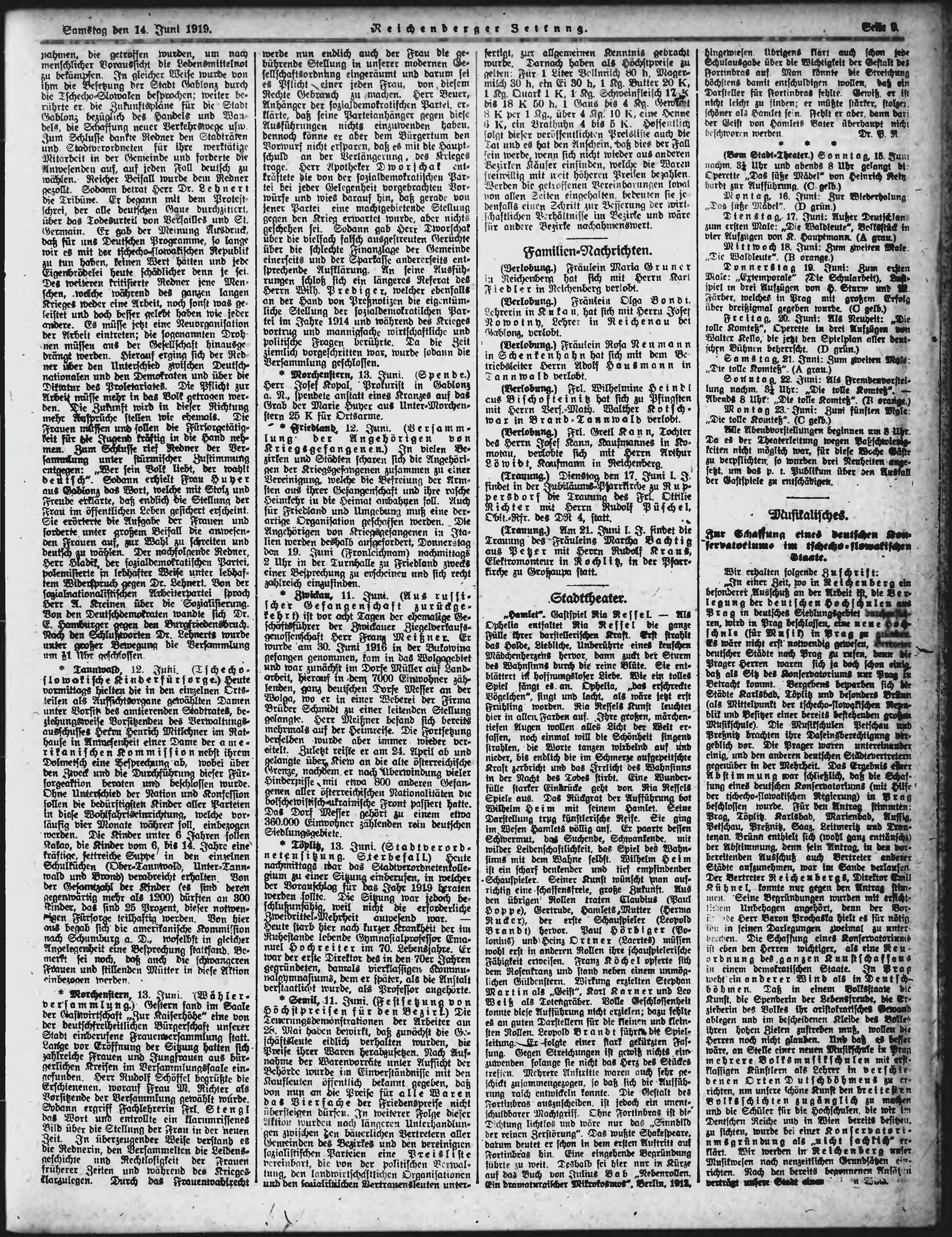 * Datum vydání výtisku: 14.6.1919 Číslo výtisku: 137 Poznámky k výtisku: ranní vydání;
