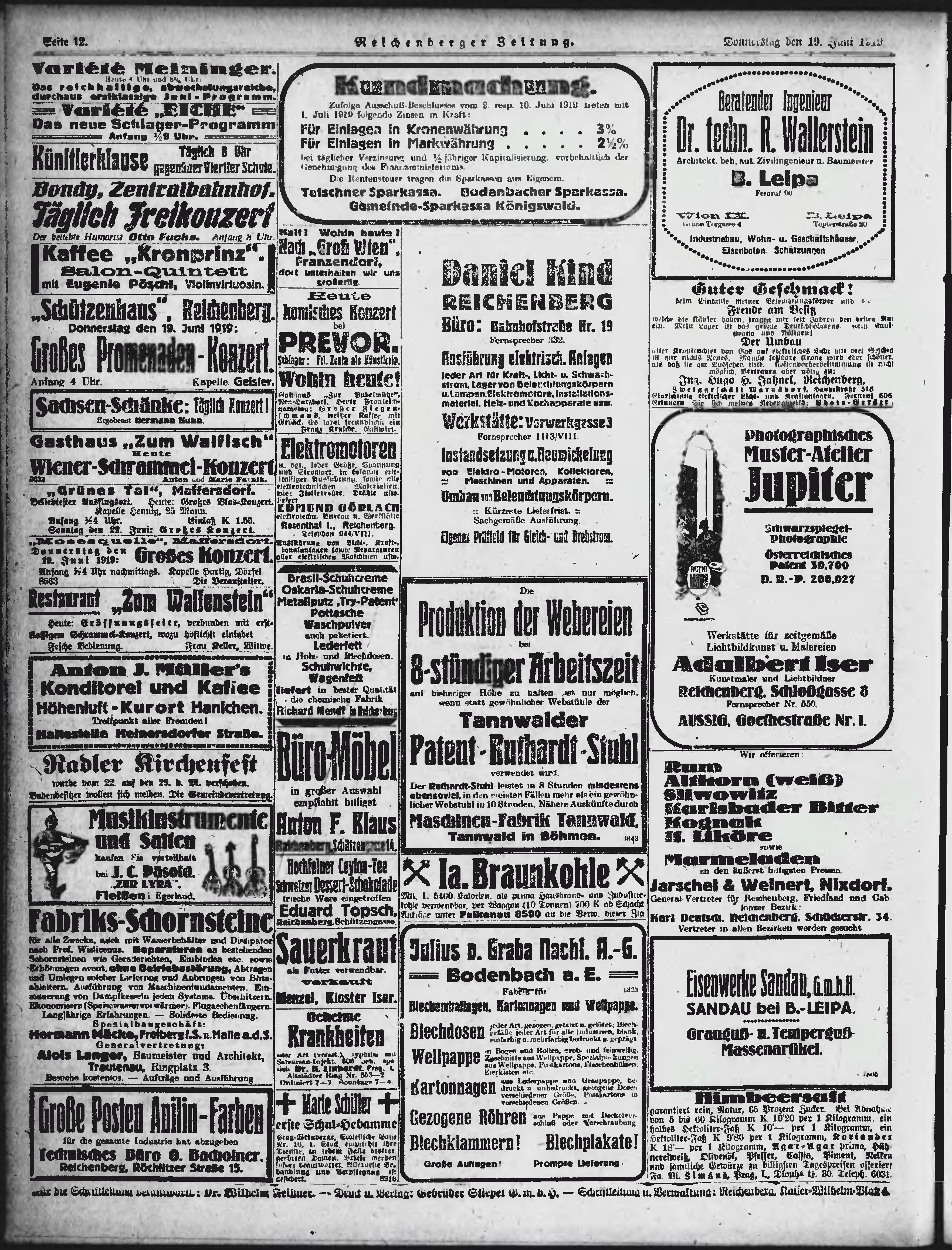 * Datum vydání výtisku: 19.6.1919 Číslo výtisku: 140 Poznámky k výtisku: ranní vydání;