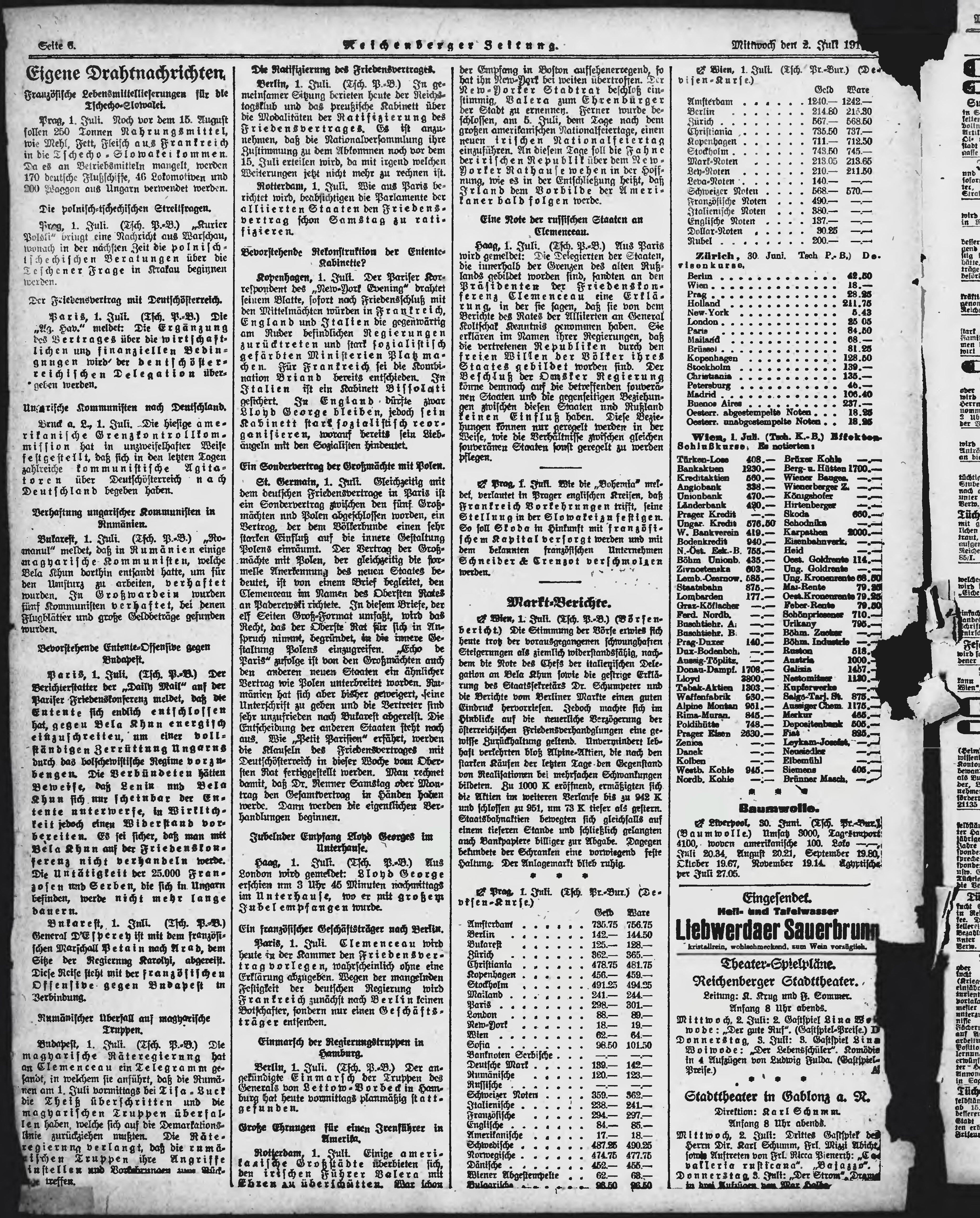 * Datum vydání výtisku: 2.7.1919 Číslo výtisku: 151 Poznámky k výtisku: ranní vydání;