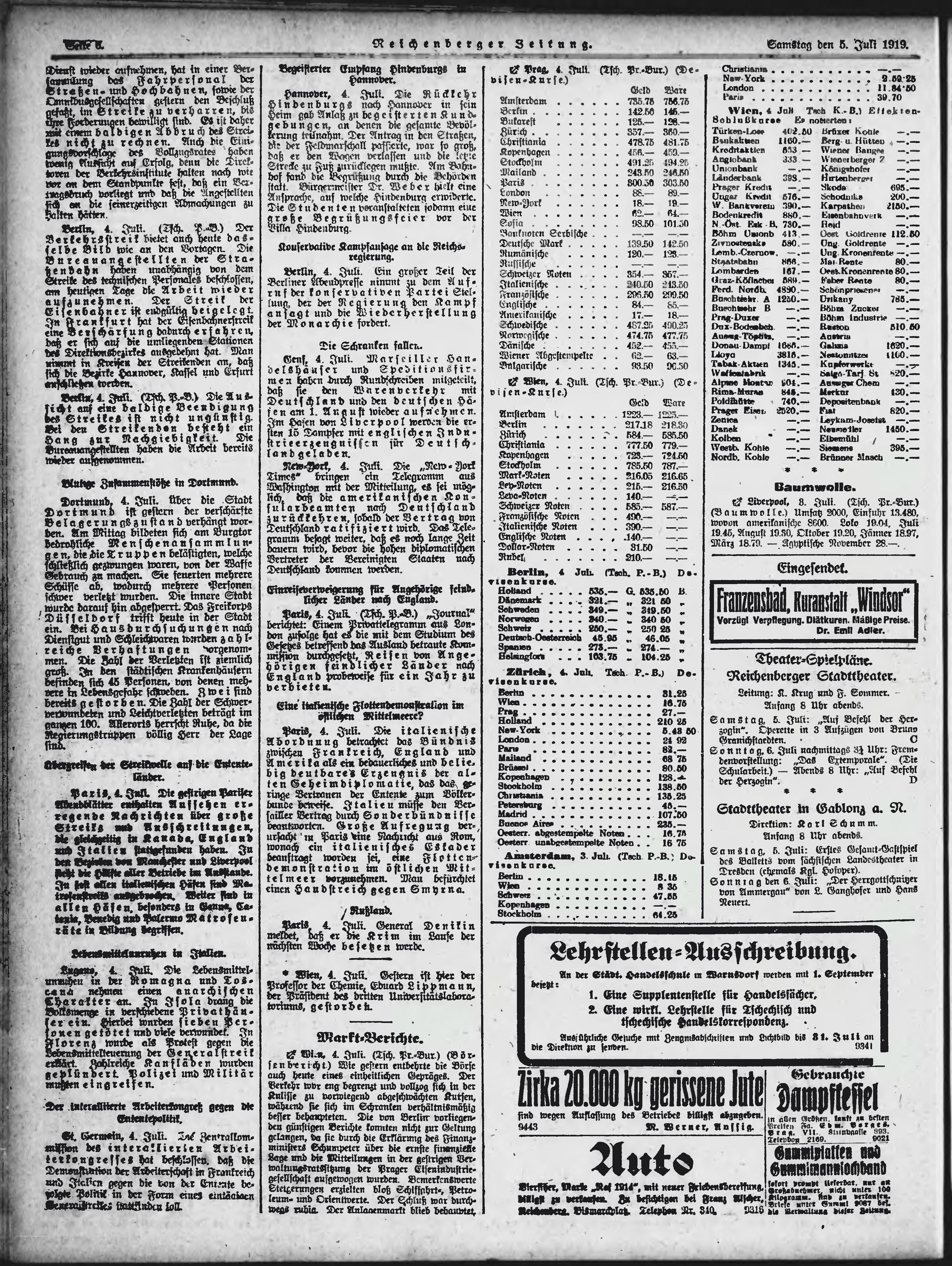 * Datum vydání výtisku: 5.7.1919 Číslo výtisku: 154 Poznámky k výtisku: ranní vydání;