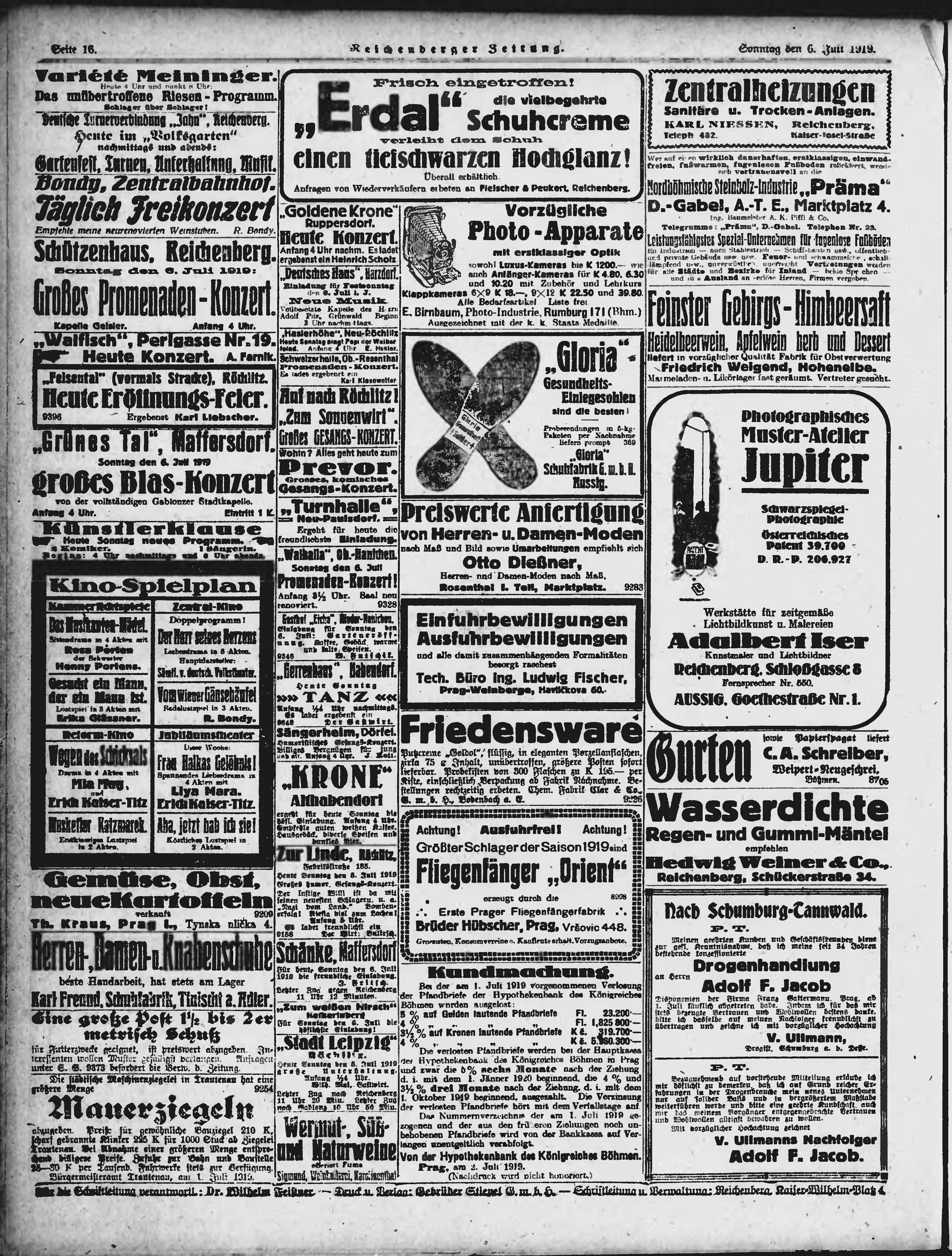 * Datum vydání výtisku: 6.7.1919 Číslo výtisku: 155 Poznámky k výtisku: ranní vydání;