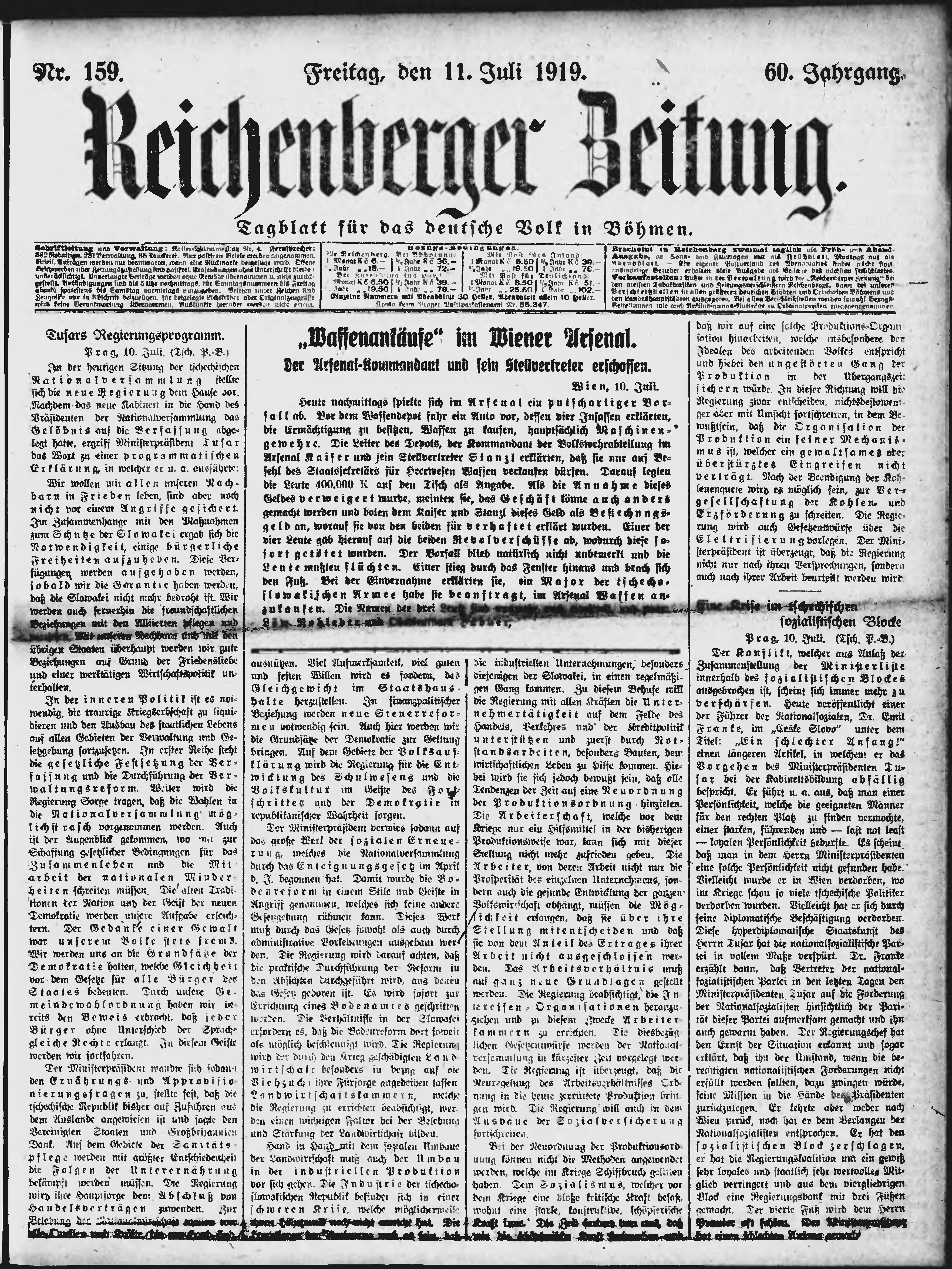 * Datum vydání výtisku: 11.7.1919 Číslo výtisku: 159 Poznámky k výtisku: ranní vydání;