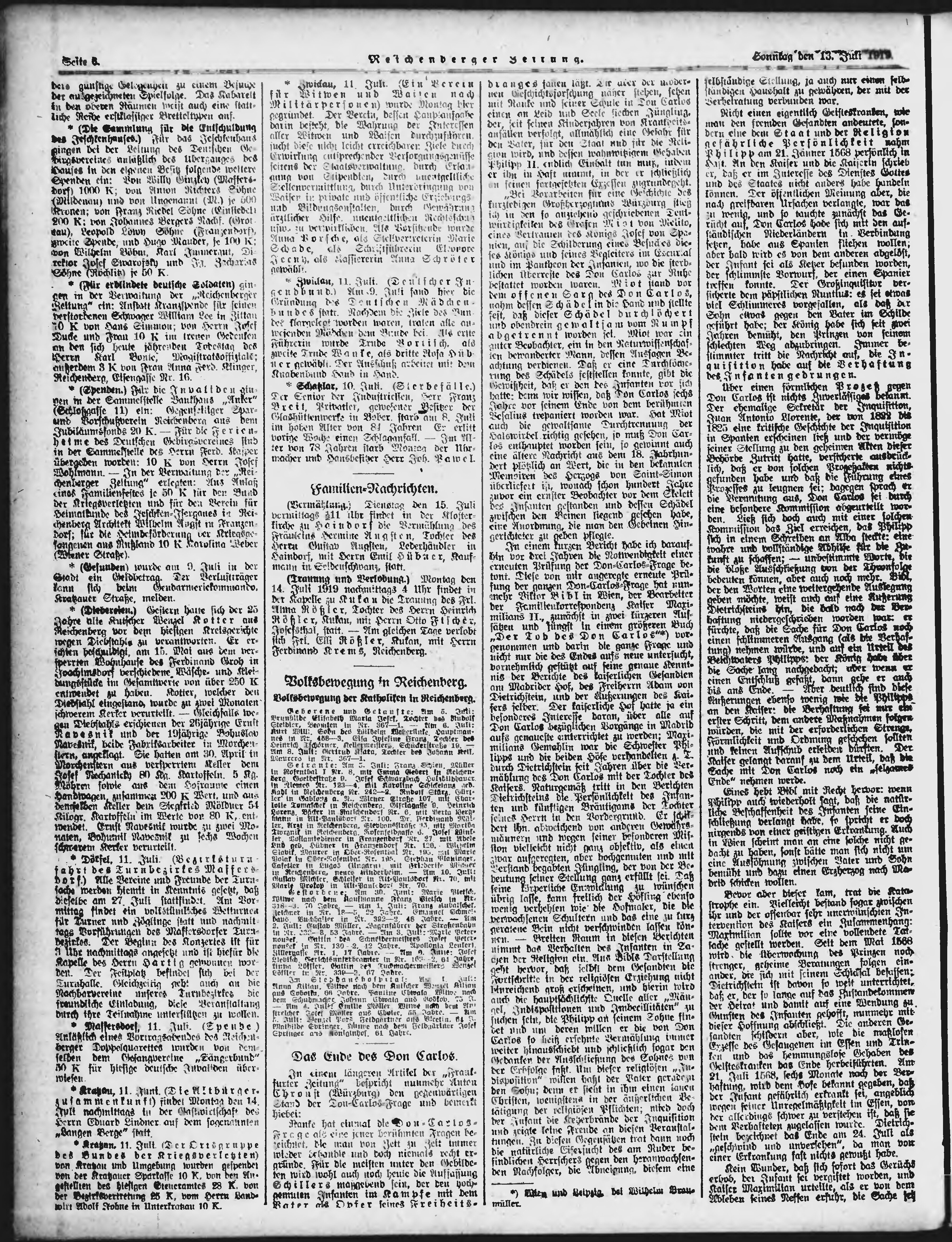 * Datum vydání výtisku: 13.7.1919 Číslo výtisku: 161 Poznámky k výtisku: ranní vydání;