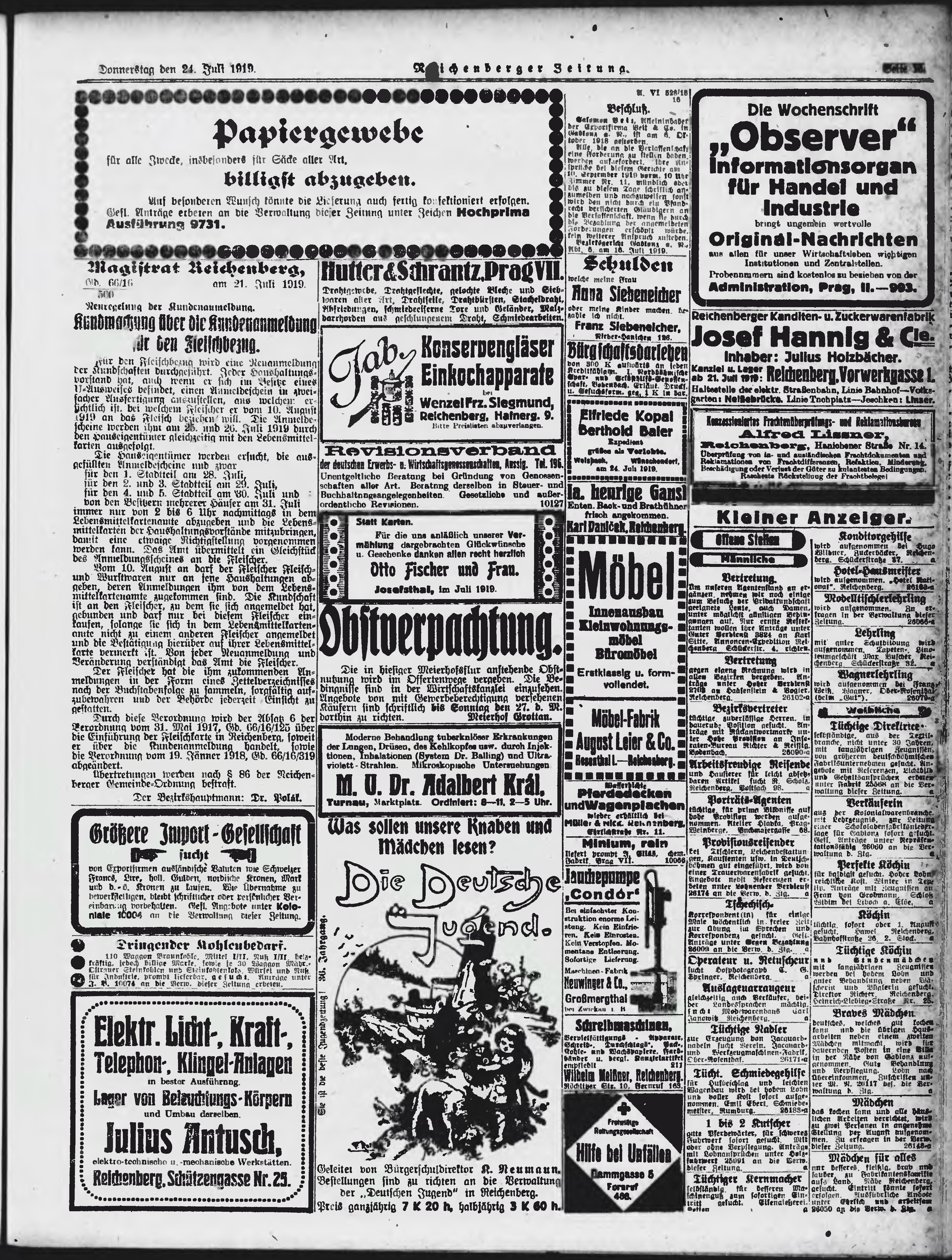 * Datum vydání výtisku: 24.7.1919 Číslo výtisku: 170 Poznámky k výtisku: ranní vydání;