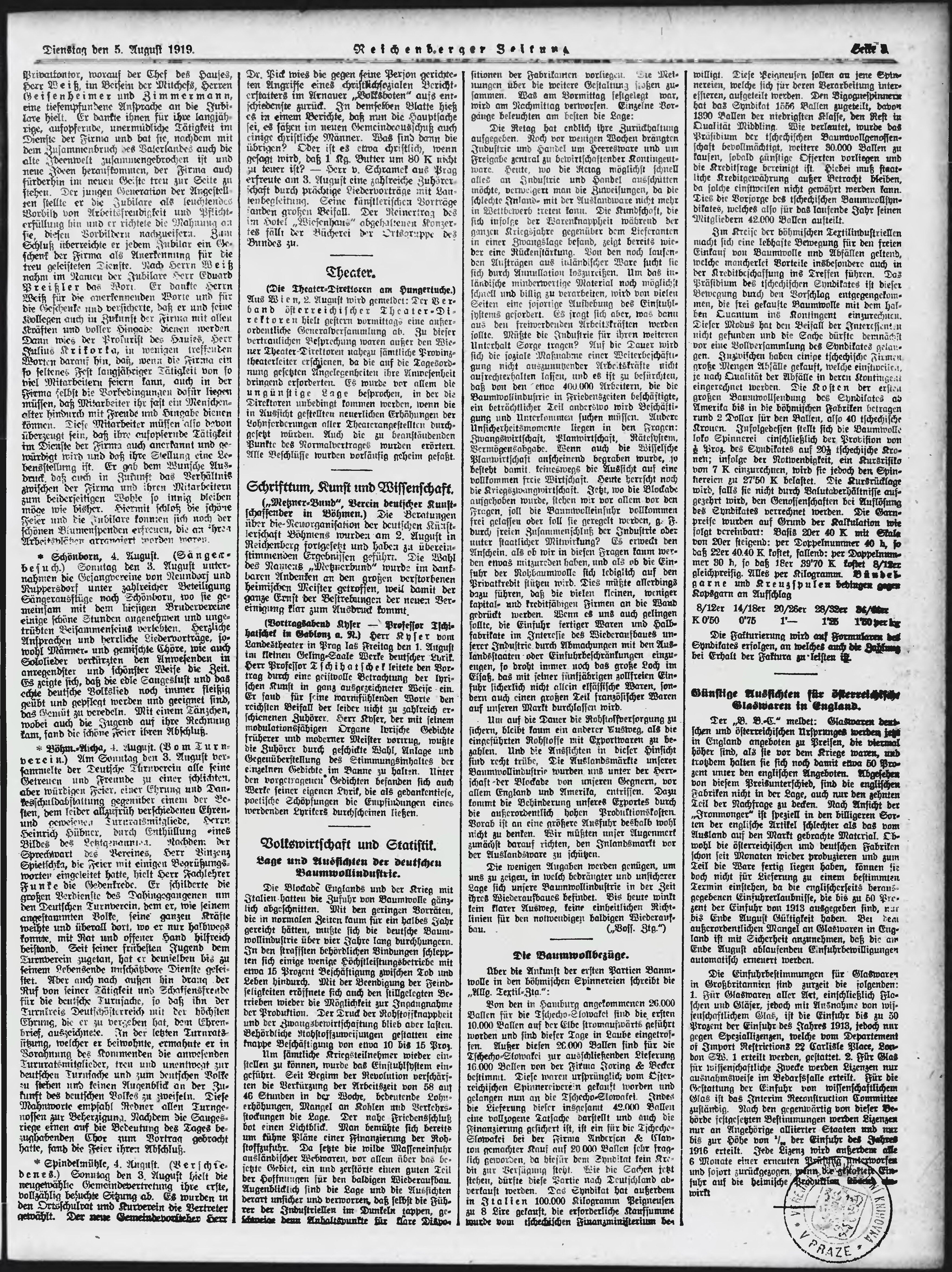 * Datum vydání výtisku: 5.8.1919 Číslo výtisku: 181 Typ výtisku: příloha Poznámky k výtisku: večerní vydání;
