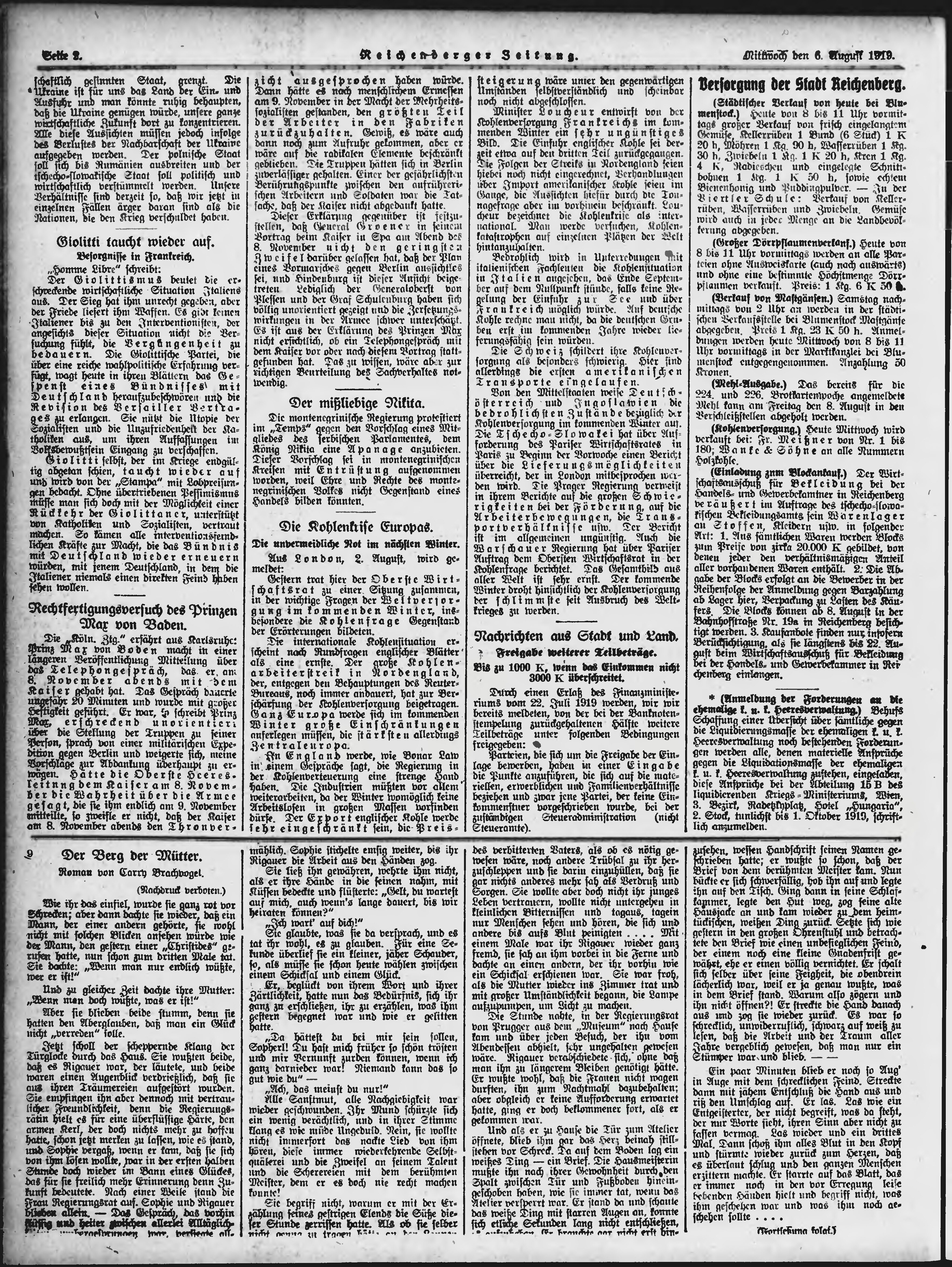 * Datum vydání výtisku: 6.8.1919 Číslo výtisku: 181 Poznámky k výtisku: ranní vydání;