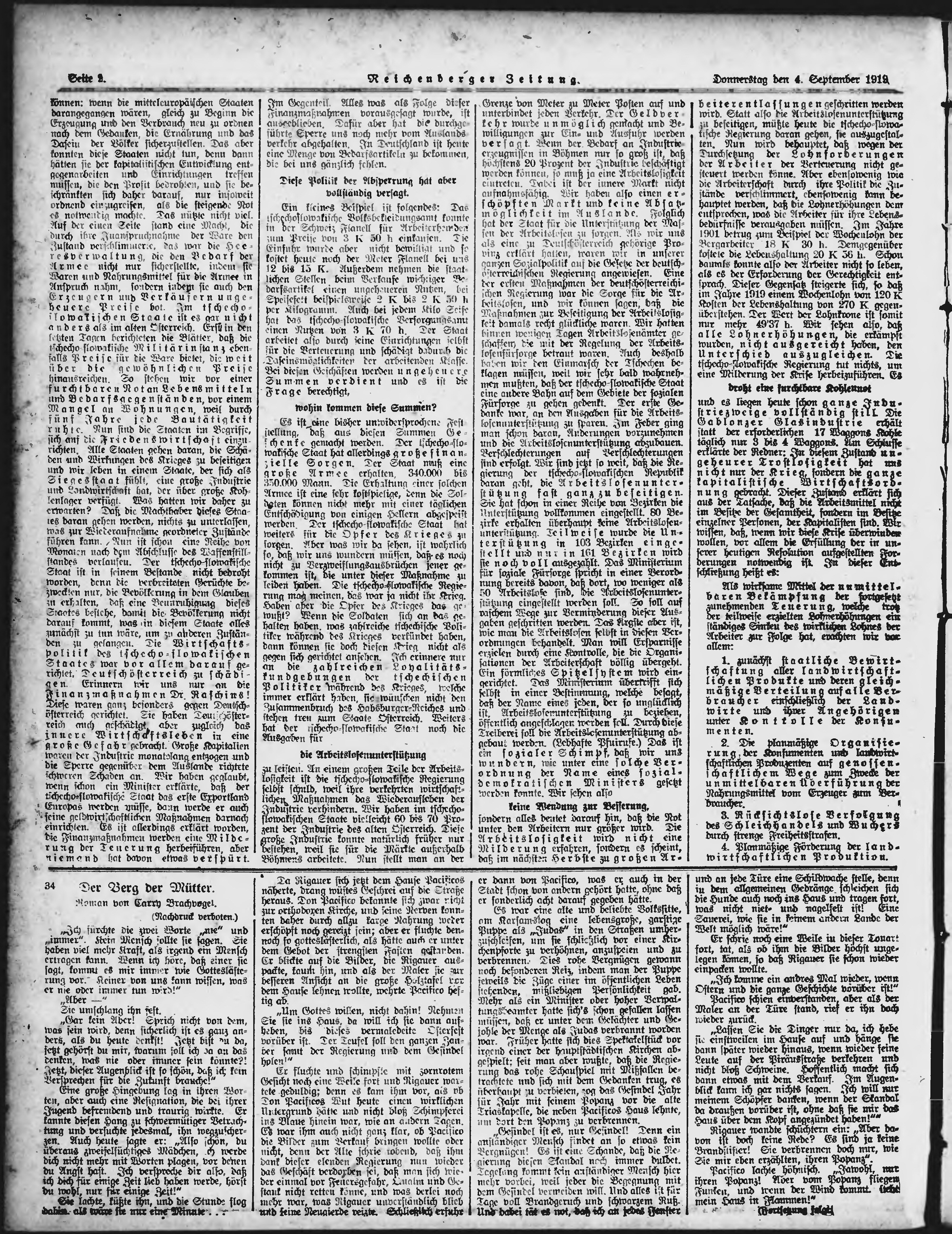 * Datum vydání výtisku: 4.9.1919 Číslo výtisku: 206 Poznámky k výtisku: ranní vydání;