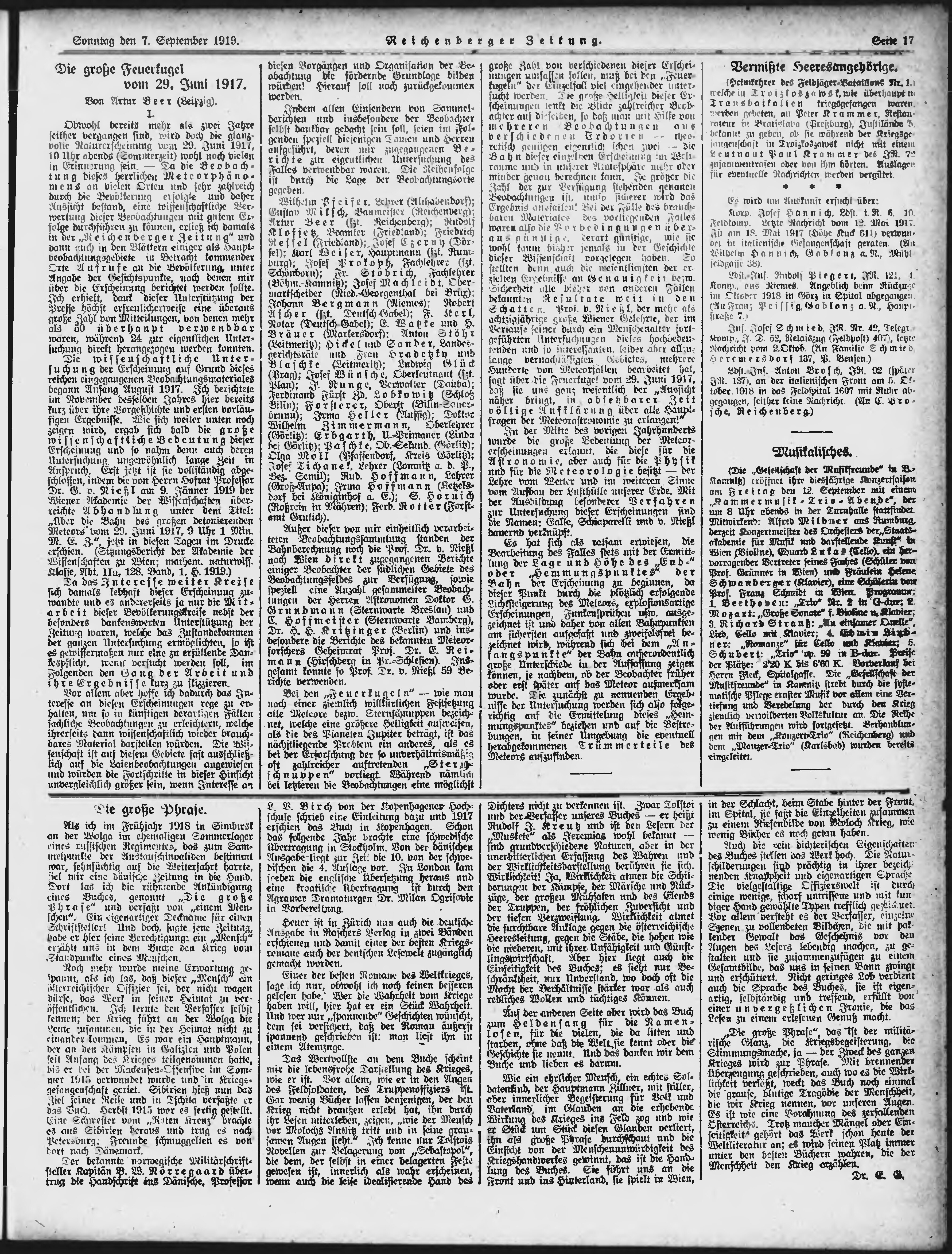 * Datum vydání výtisku: 7.9.1919 Číslo výtisku: 209 Poznámky k výtisku: ranní vydání;