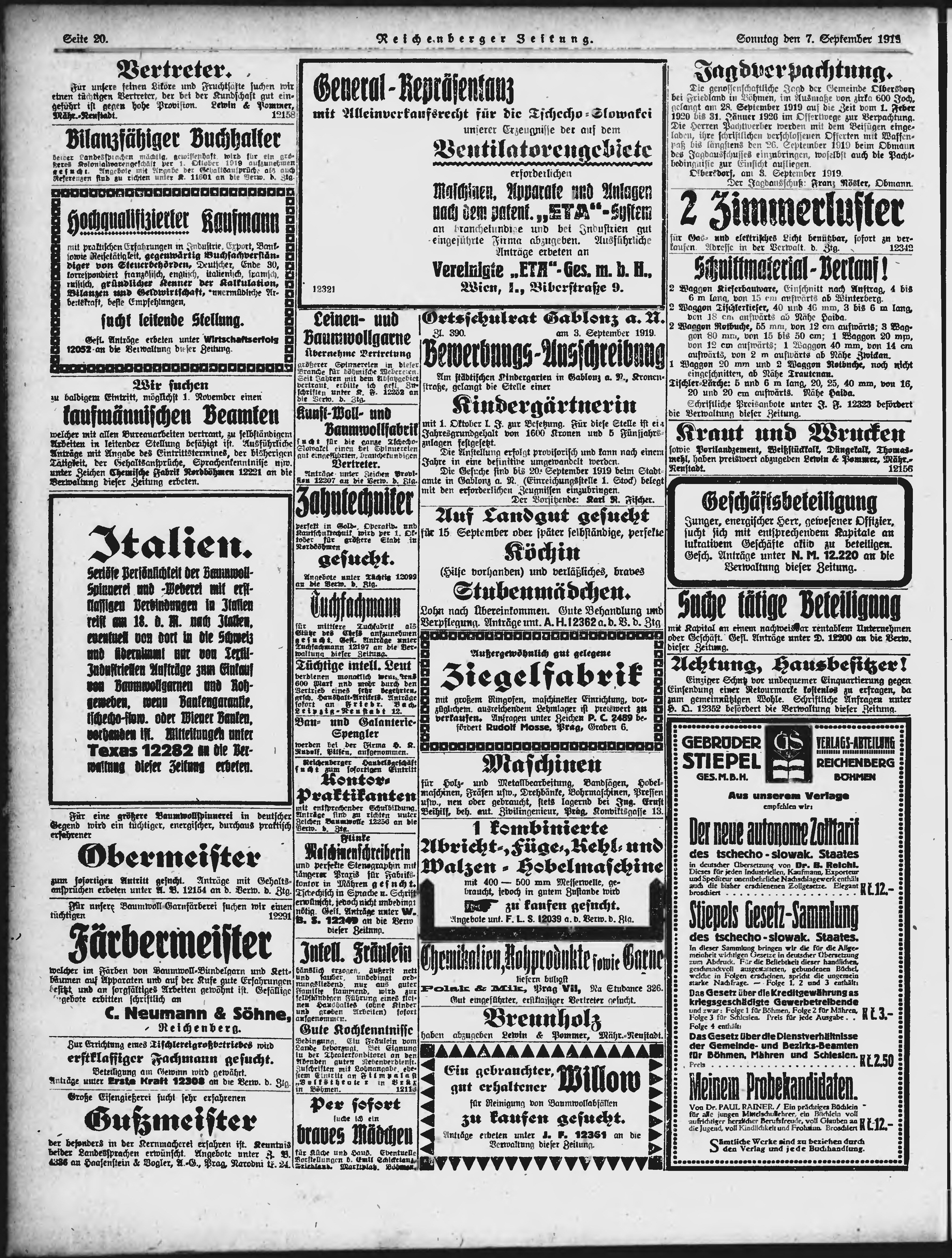 * Datum vydání výtisku: 7.9.1919 Číslo výtisku: 209 Poznámky k výtisku: ranní vydání;