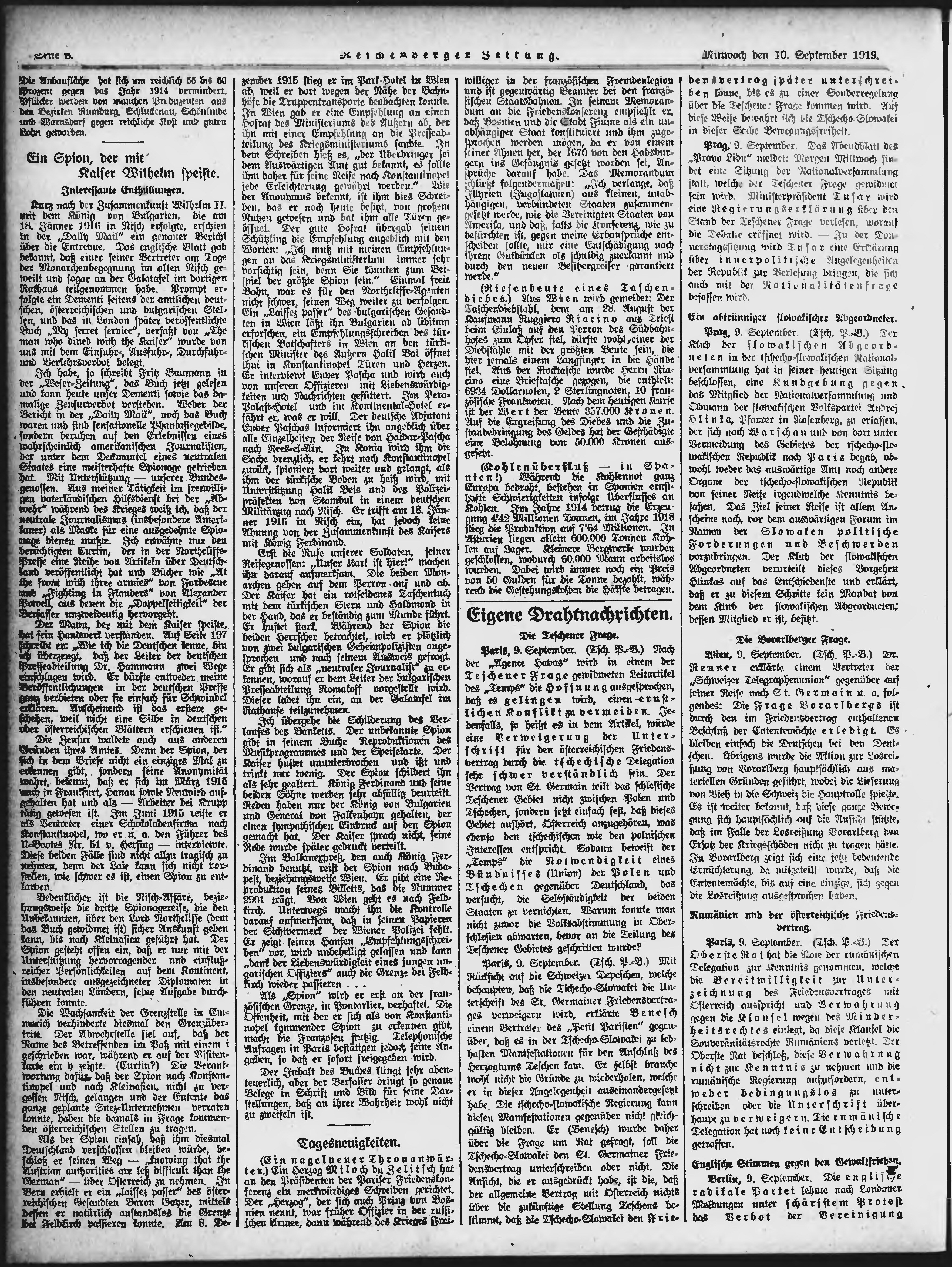 * Datum vydání výtisku: 10.9.1919 Číslo výtisku: 210 Poznámky k výtisku: ranní vydání;