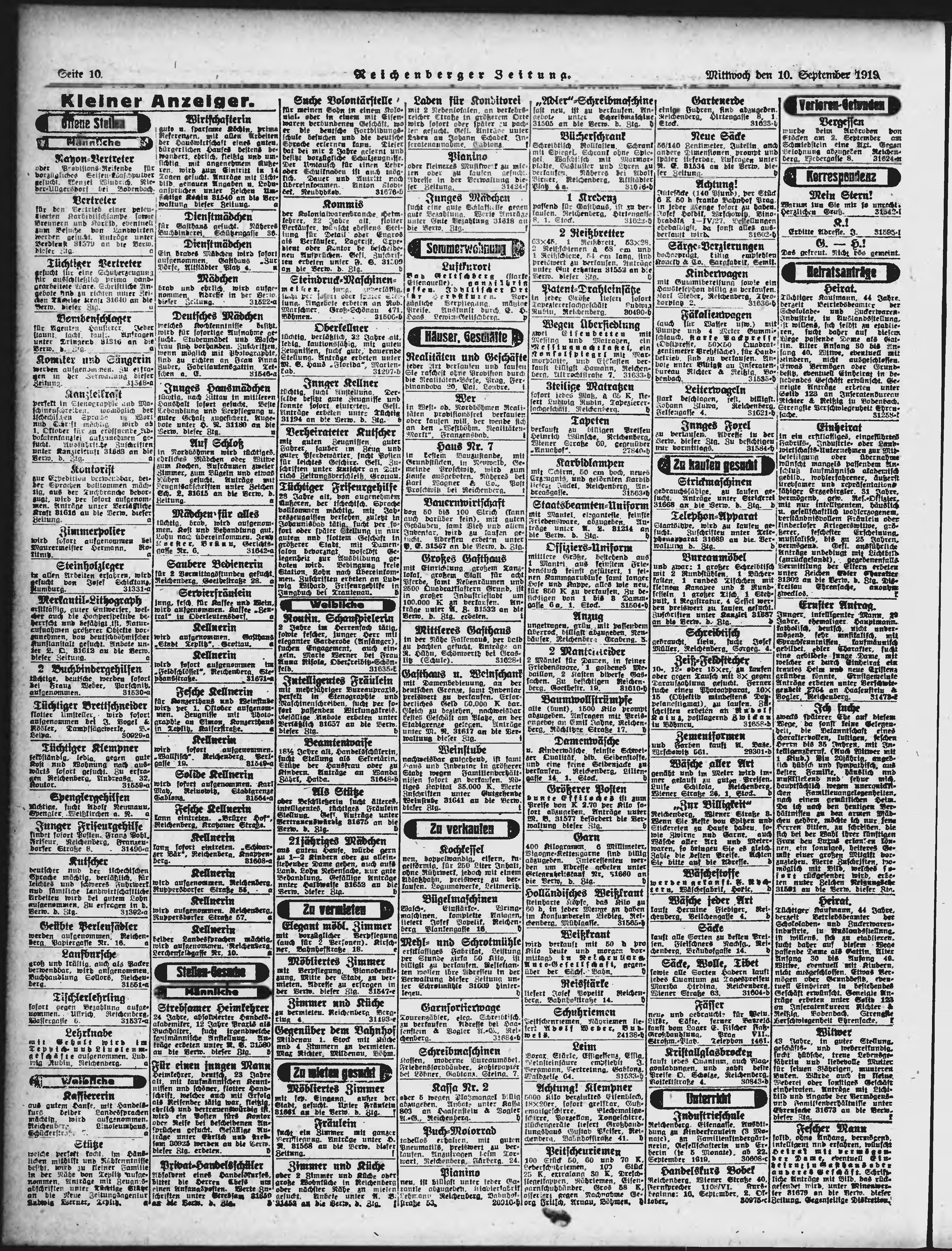 * Datum vydání výtisku: 10.9.1919 Číslo výtisku: 210 Poznámky k výtisku: ranní vydání;