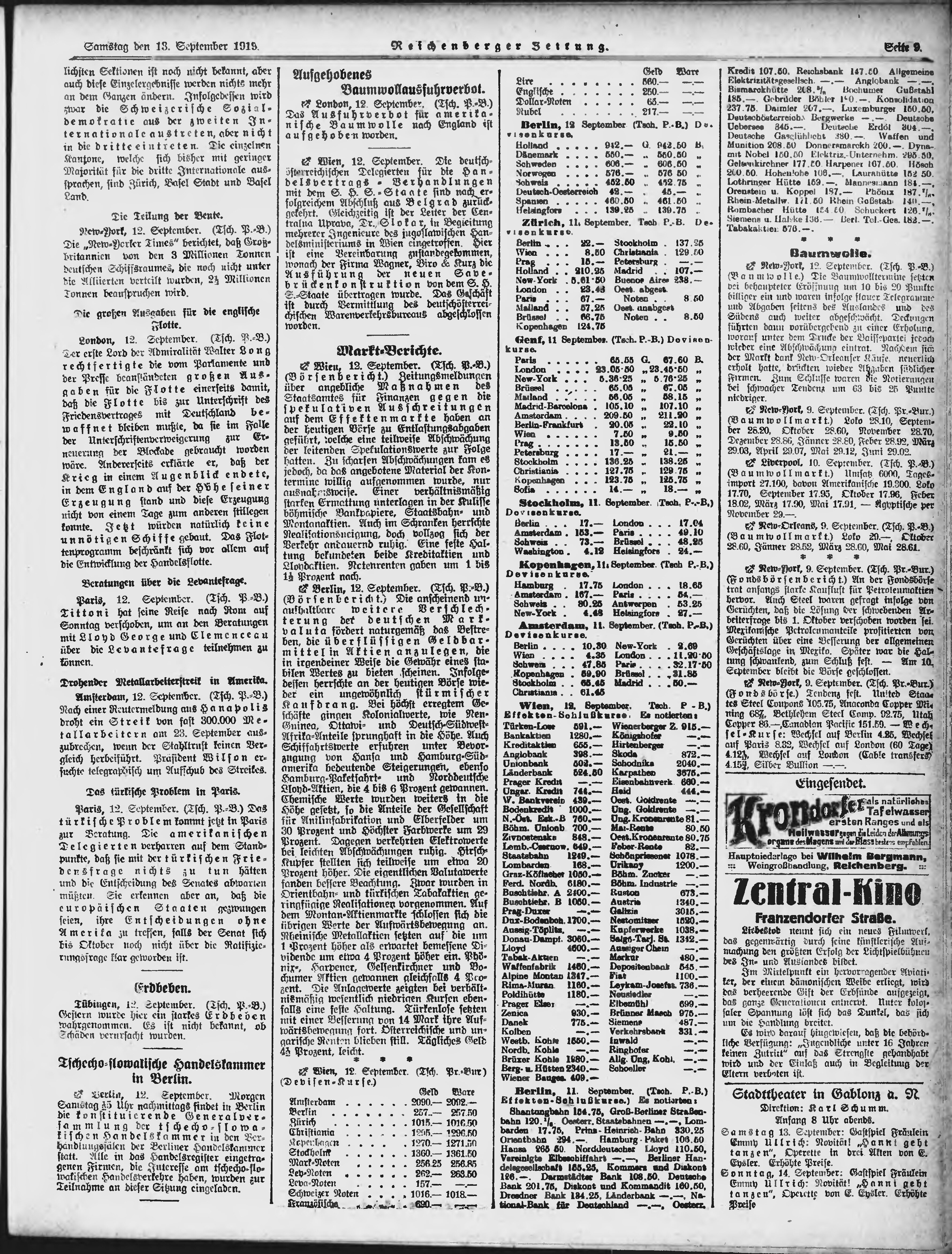 * Datum vydání výtisku: 13.9.1919 Číslo výtisku: 213 Poznámky k výtisku: ranní vydání;