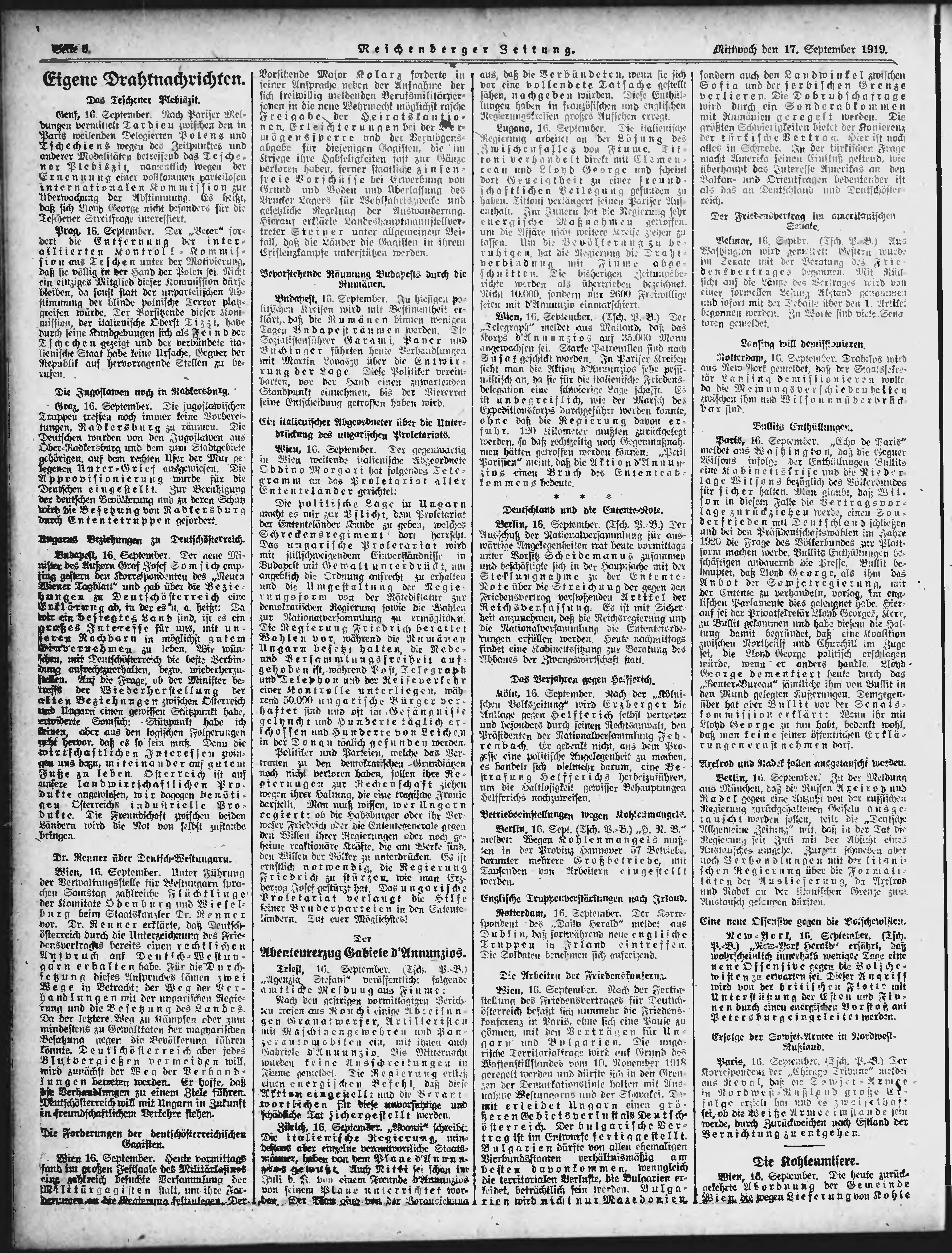 * Datum vydání výtisku: 17.9.1919 Číslo výtisku: 216 Poznámky k výtisku: ranní vydání;